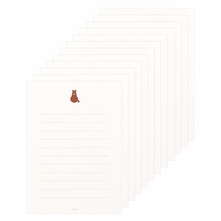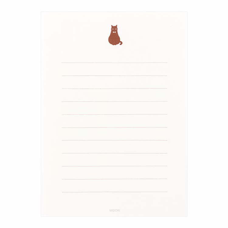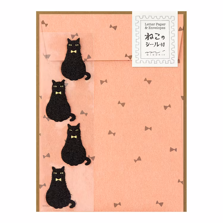 Gör någon glad – skicka ett bedårande brev! Det här brevsetet från Midori innehåller 12 linjerade brevpapper prydda med en svart katt högst upp, 4 kuvert, samt 4 luddiga kattklistermärken att försluta kuverten med.