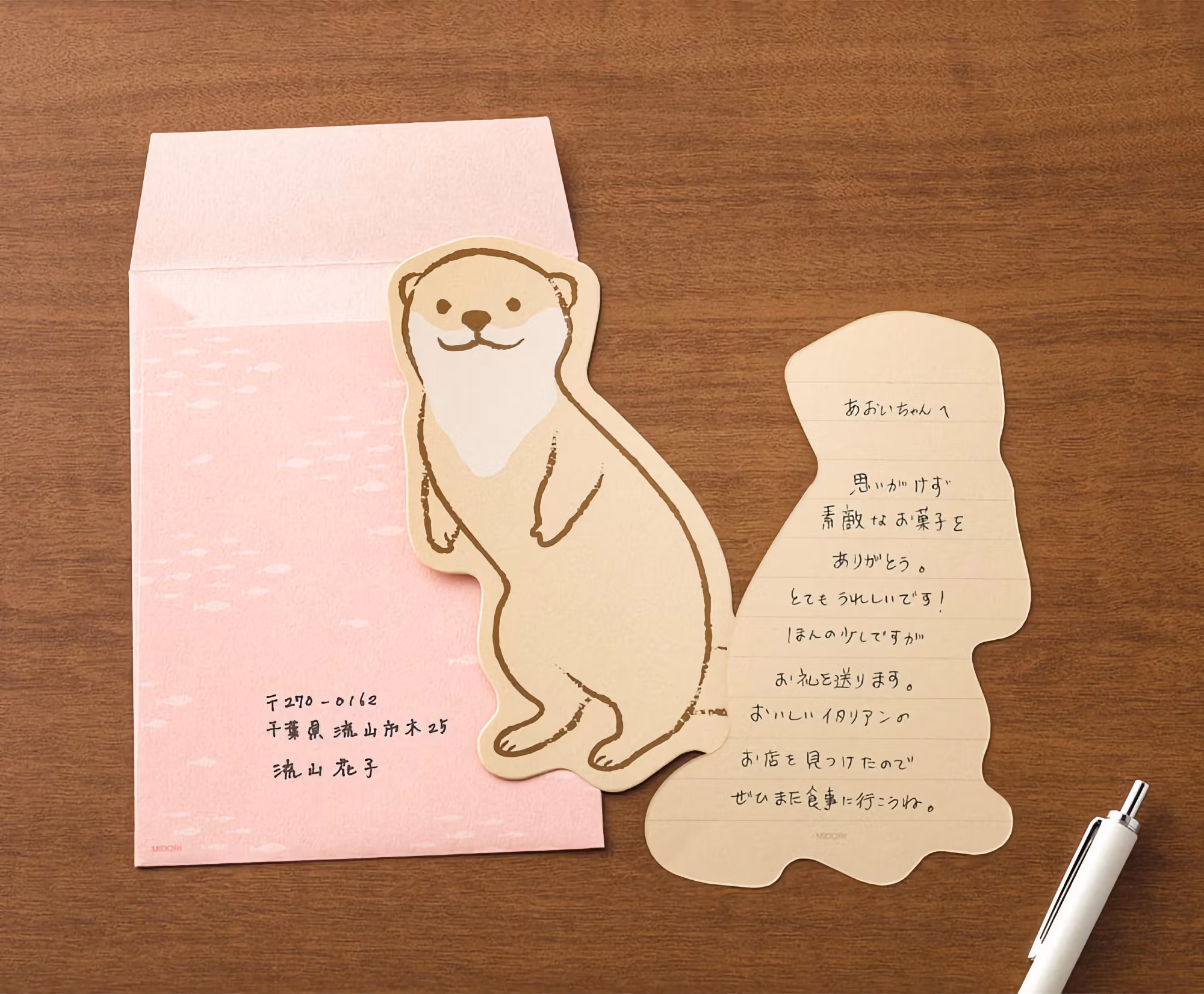 Gör någon glad – skicka ett bedårande brev! Det här brevsetet från Midori innehåller 6 utterformade brevpapper och 3 kuvert.