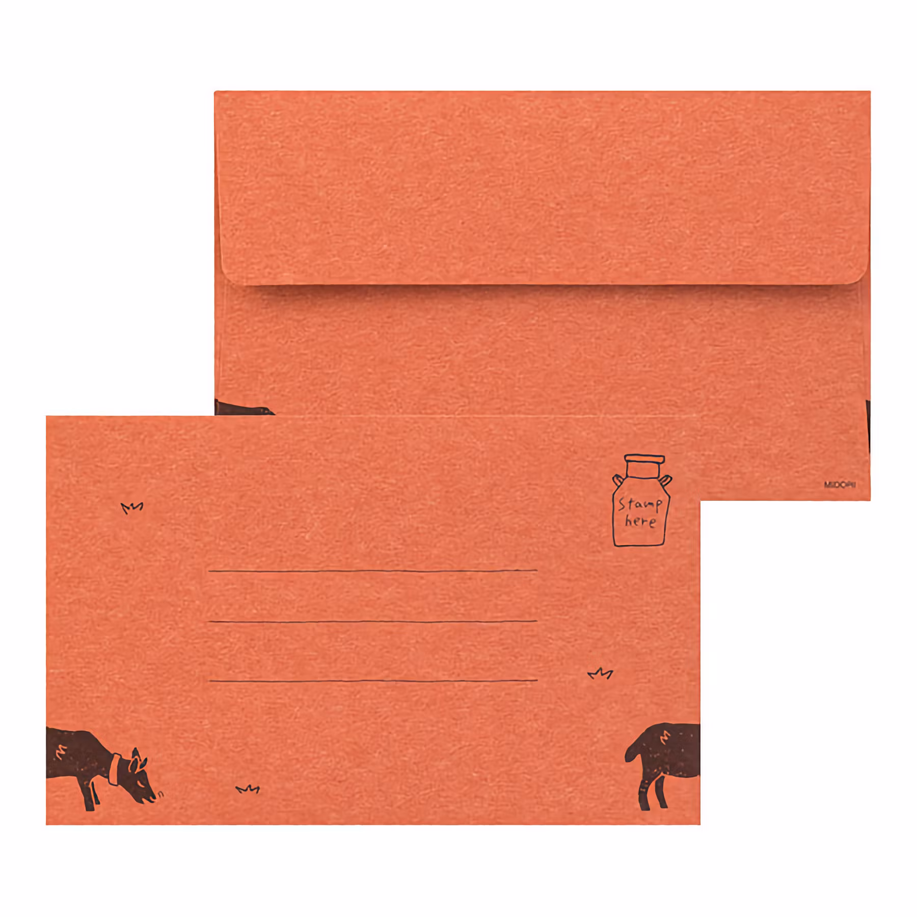 Att få ett brev är något alldeles speciellt, särskilt när både pappret och kuvertet kommer från Midori. Det här settet är illustrerad med en superkaxig get (särskilt om du kan japanska. För dig som inte kan: se till att läsa brevet snabbt, eller ät upp det!).
