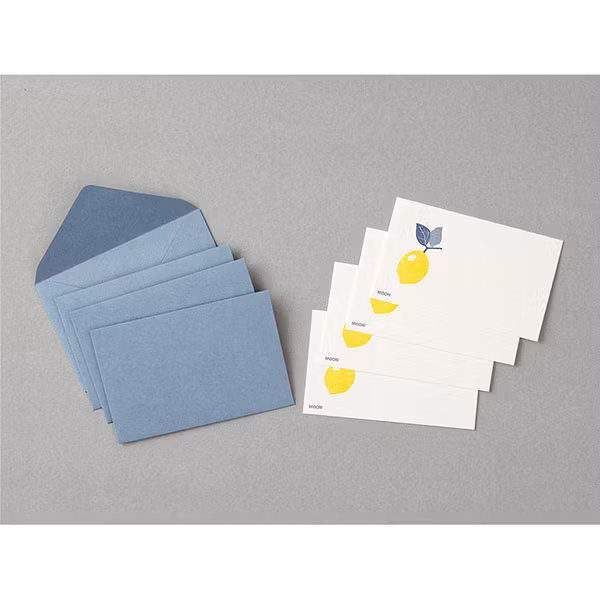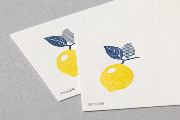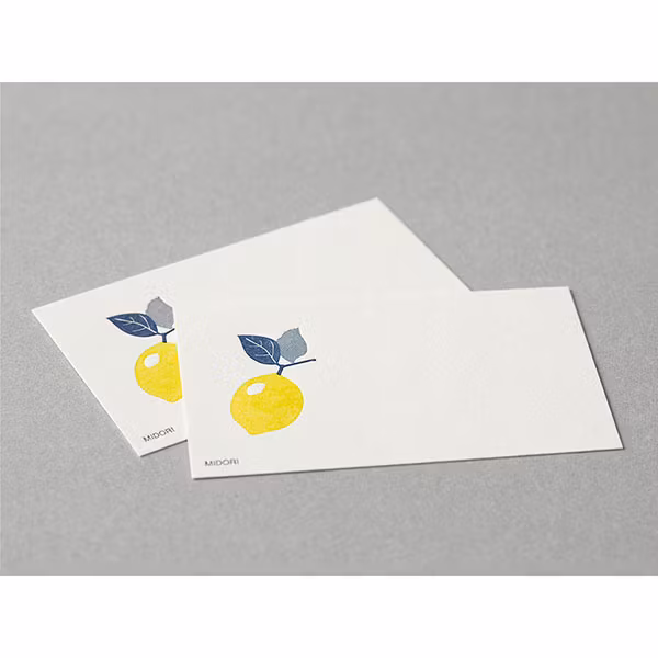 De här korten i visitkortsformat från Midori är något alldeles extra. Det klassiska citronmotivet är tryckt med så kallad letterpress-teknik – på svenska kallat boktryck – vilket innebär att trycket blir både taktilt och exklusivt. Tekniken kräver stor noggrannhet, och innebär att en upphöjd infärgad yta pressas mot varje papper, vilket alltså bidrar till det taktila trycket.