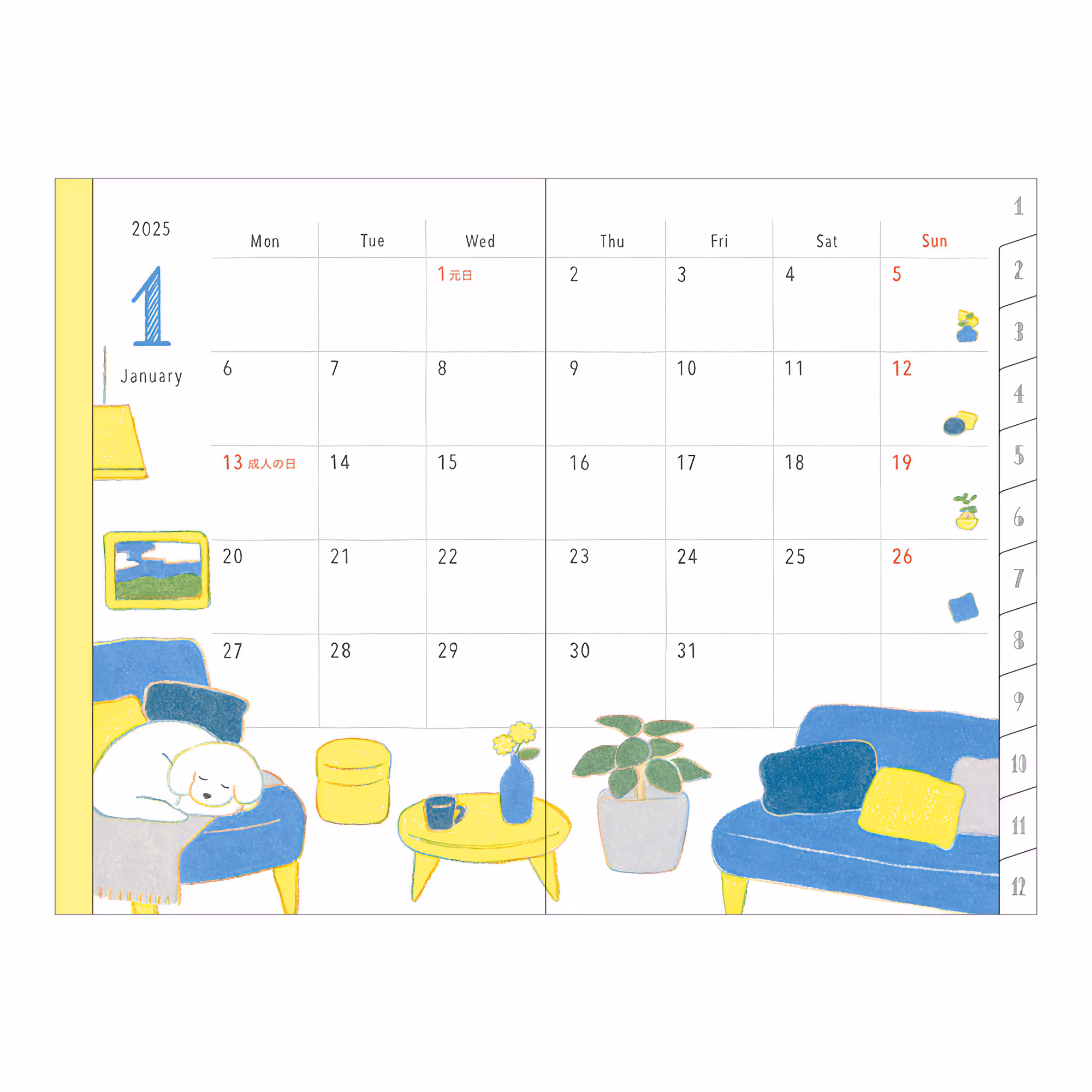 • Uppslag med årsöverblick med rutor för hela 2025 (se bild 6).
