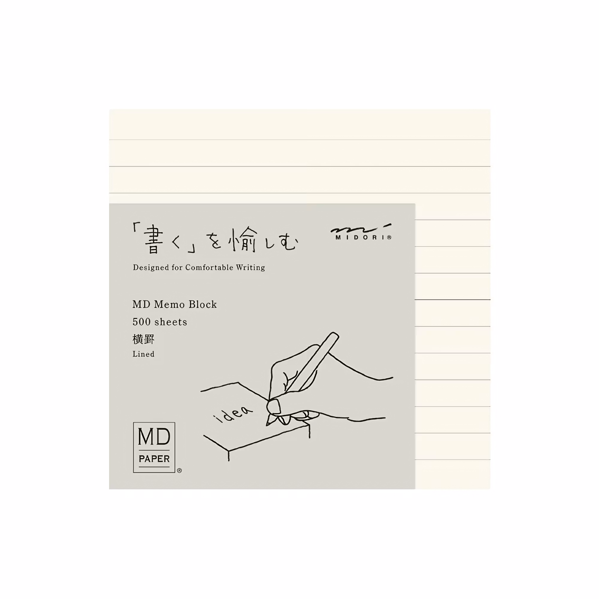 Det här memo-blocket har en imponerande mängd på 500 ark av Midoris älskade MD-papper. MD-pappret utvecklades redan 1960 och har sedan dess ständigt förbättrats. För att säkerställa högsta kvalitet har Midori genomfört omfattande tester med olika skrivredskap, såsom att observera hur bläcket beter sig på pappret, hur snabbt det torkar, hur väl pennspetsarna glider över ytan och hur papperet känns när man rör vid det. Resultatet är en papperskvalitet som är resistent mot att blöda igenom, inte smetar ut och dessutom är perfekt för att använda med reservoarpennor, vilket tillsammans ger en underbar skrivupplevelse.