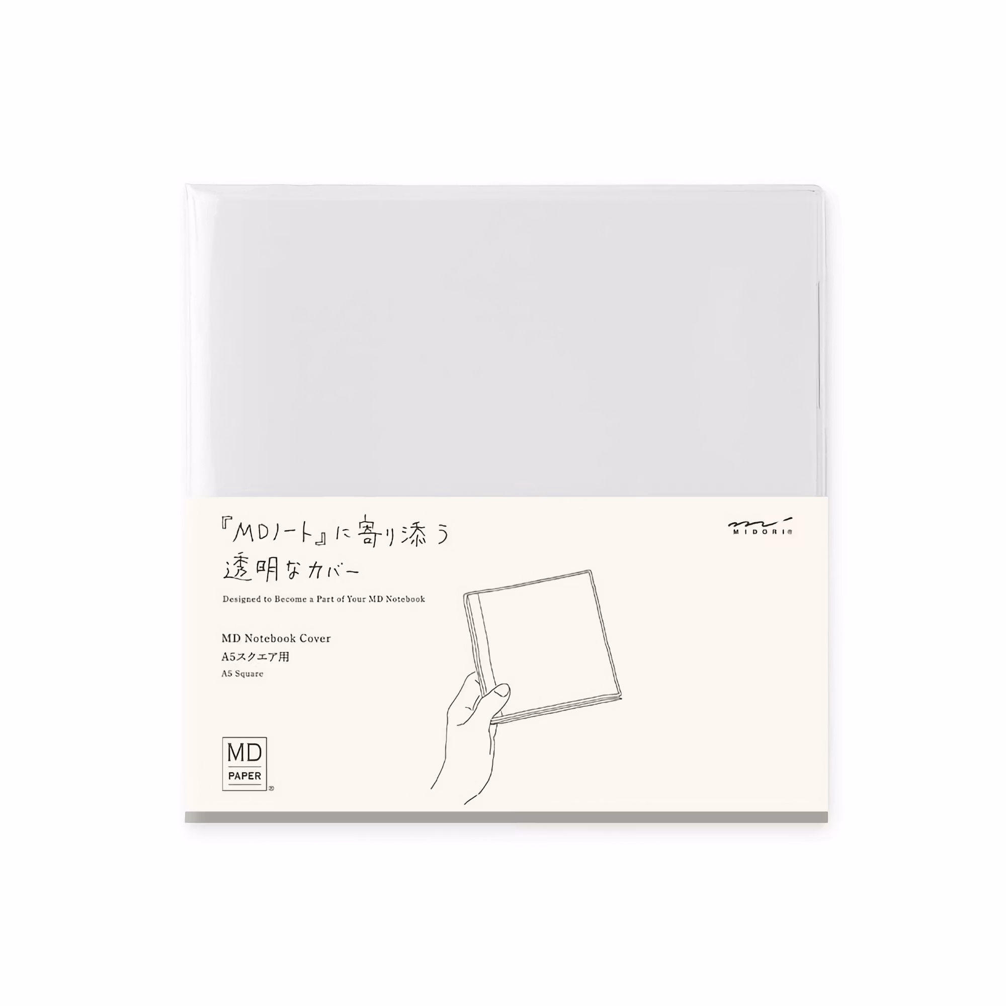 Midori MD Clear Cover [Square] är ett fodral i vinyl till Midoris anteckningsböcker i Square-format. För att mjuka upp den oorganiska känslan av vinylen kan den med fördel placeras över det paraffinpappersomslag som ingår vid köp av Midoris anteckningsböcker. Fodralet har en pennhållare till höger (se bild). Anteckningsbok ingår inte.
