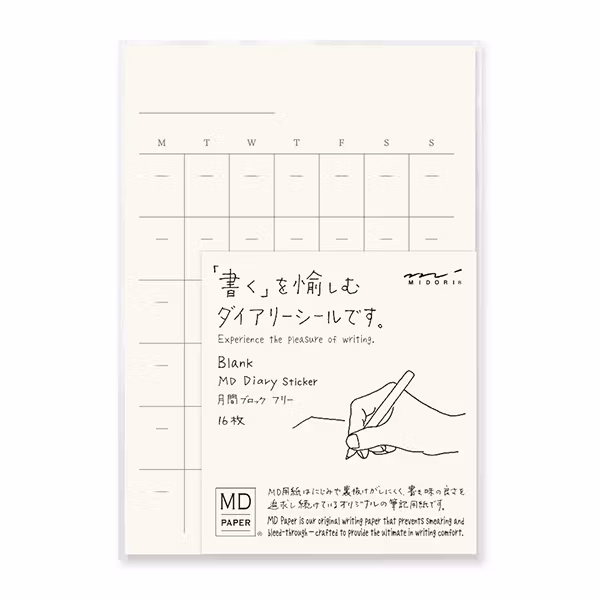 De här odaterade kalenderklistermärkena förvandlar vilken anteckningsbok som helst till en kalender. Klistermärkena passar på grund av papperskvalitet och färg särskilt utmärkt till Midoris egna anteckningsböcker, men fungerar givetvis även med andra.