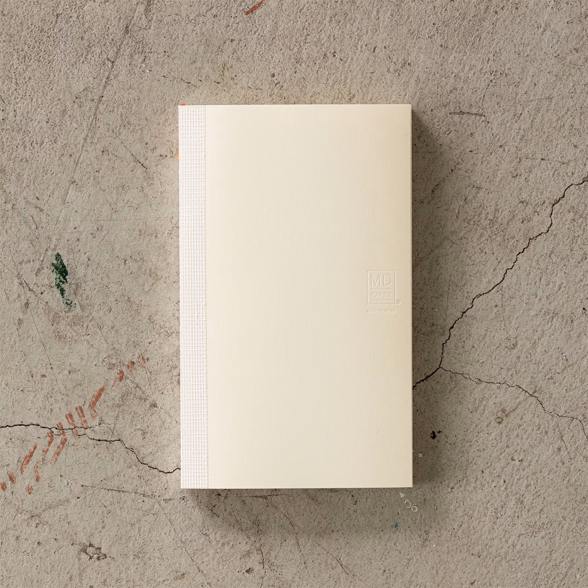 Midori MD är en serie japanska anteckningsböcker som kännetecknas av fantastisk papperskvalitet och enkelhet. Pappret har, sedan det först utvecklades på 60-talet, genomgått ständiga förbättringar. Detta innebär att det nu bland annat är resistent mot genomblödning och bläckutflytningar, vilket därmed också gör det vänligt mot reservoarpennor. Anteckningsboken har en stadig trådbindning, vilket gör att den ligger platt när den är öppen. Kombineras gärna med skyddsomslag i vinyl, papper eller läder. Tillverkad i Japan.