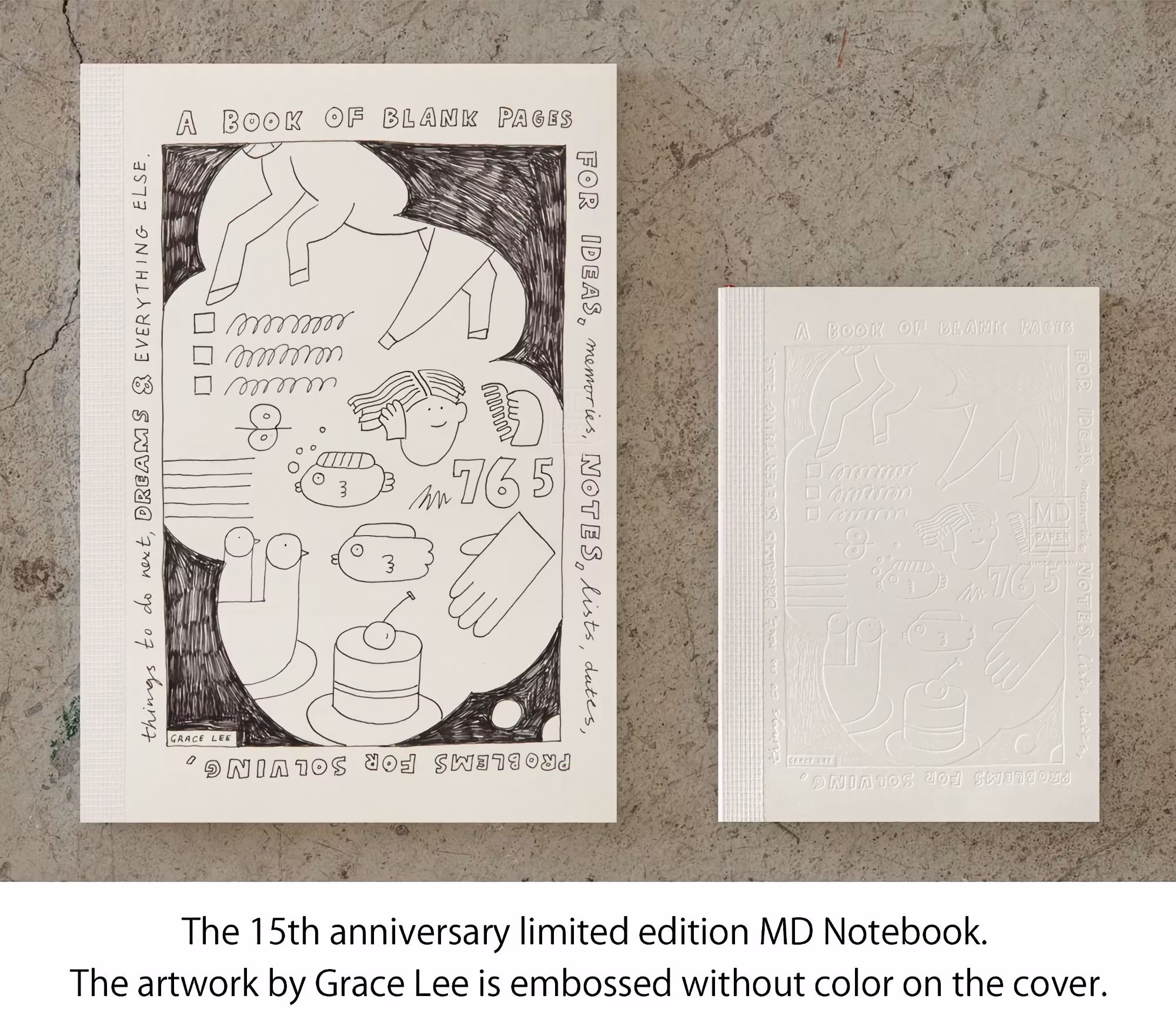 För att fira MD:s 15-årsjubileum bjöd MD-teamet in Grace Lee och 14 andra artister att gå loss med sin kreativitet. Sedan skapade de specialutgåvor av MD Notebooks med konstnärernas illustrationer präglade på omslagen.