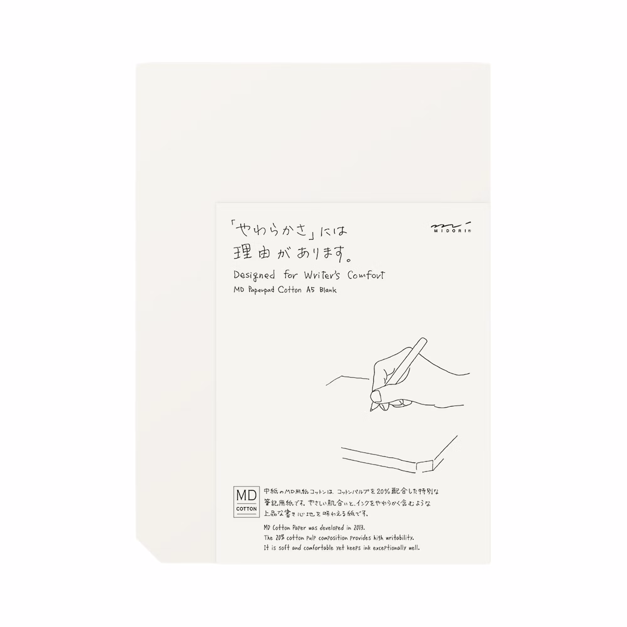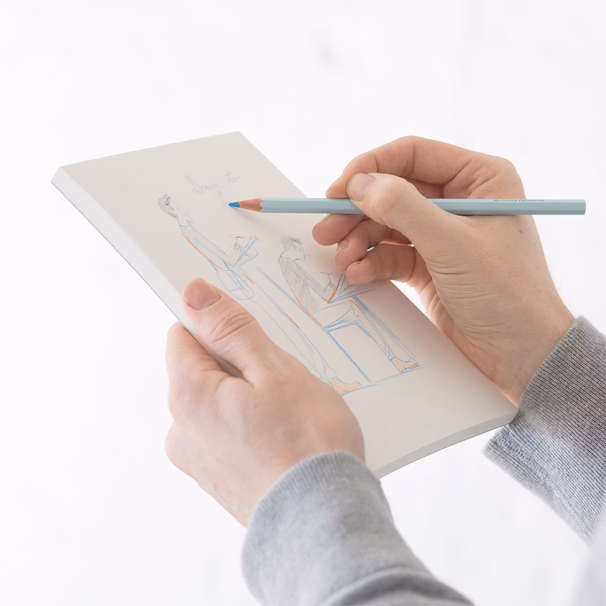 Det här pappersblocket med Midoris exceptionella bomullspapper är limmat både på kort- och långsidan, vilket – tillsammans med den tjocka underliggande skivan – gör det extra stadigt. Den unika limningen underlättar också för anteckningar även i liggande format. Och – icke att förglömma(!) – det möjliggör också att du kan göra anteckningar ståendes.