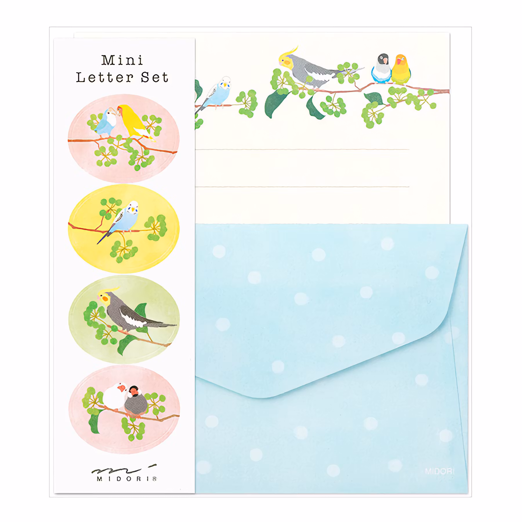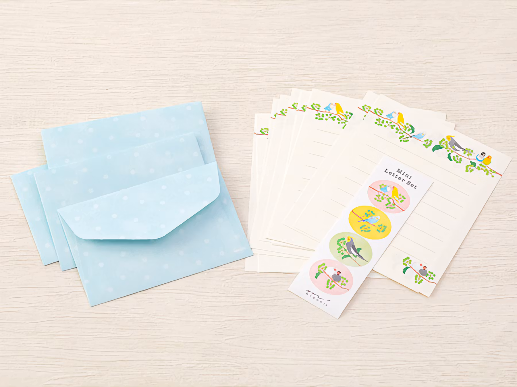 Gör någon glad – skicka ett bedårande brev! Det här brevsetet från Midori innehåller 12 linjerade brevpapper med vackra fågelillustrationer, 4 kuvert, samt 4 härliga fågelklistermärken att försluta kuverten med.