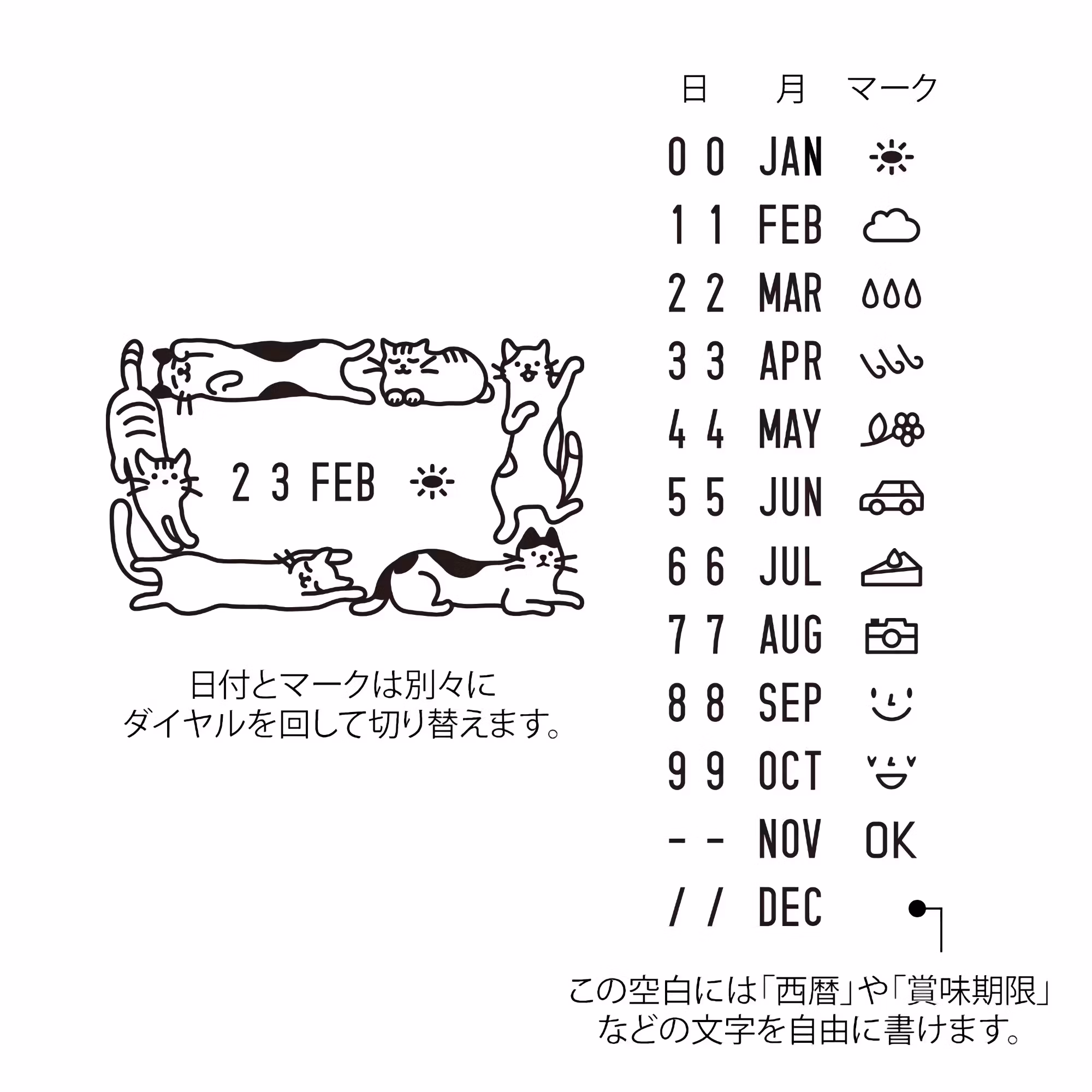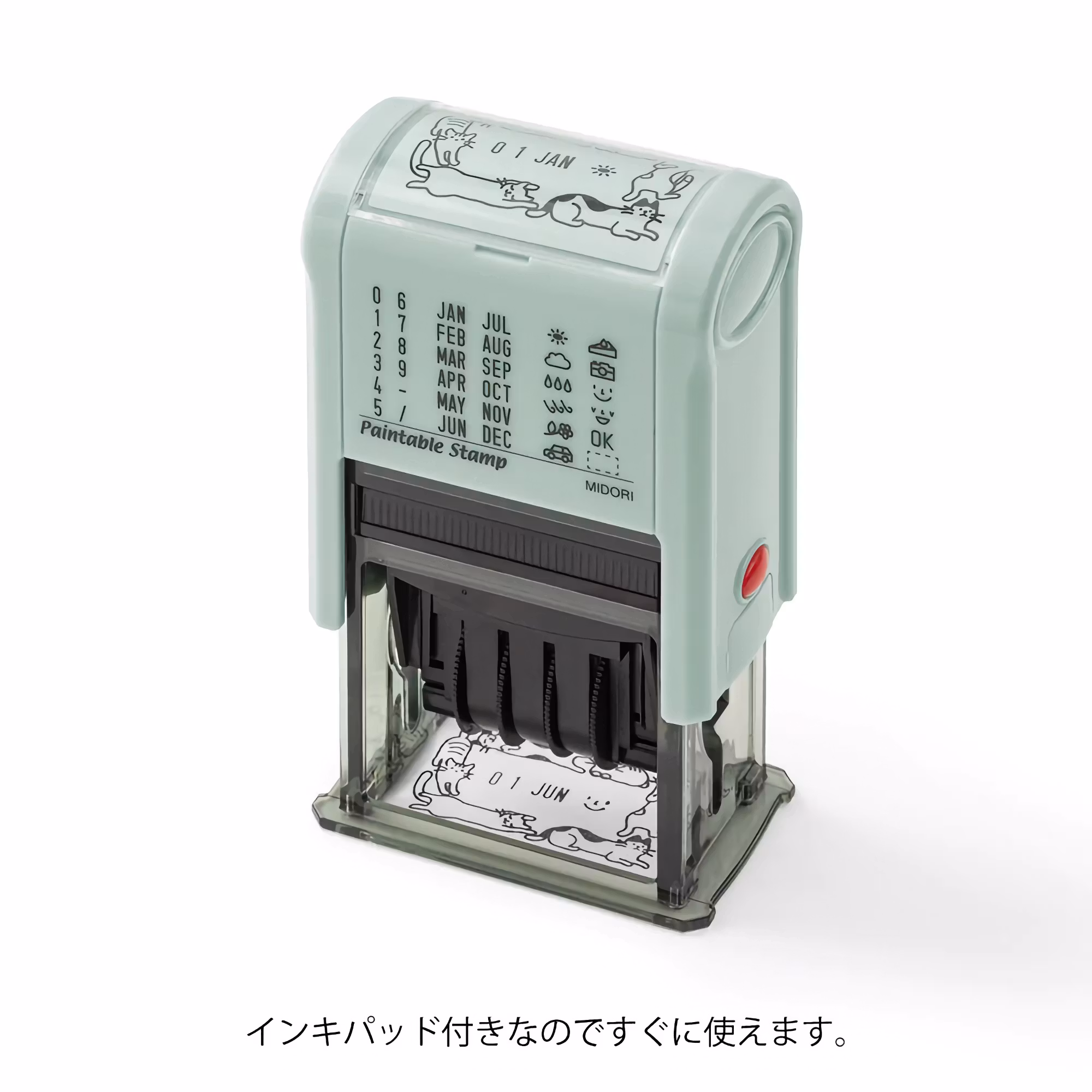 Med den här geniala stämpeln från Midori kan du enkelt stämpla dit datum, liksom aktuellt väder eller andra symboler som sammanfattar dagen. Datumet utsmyckas sedan genom att ramas in av härliga katter.