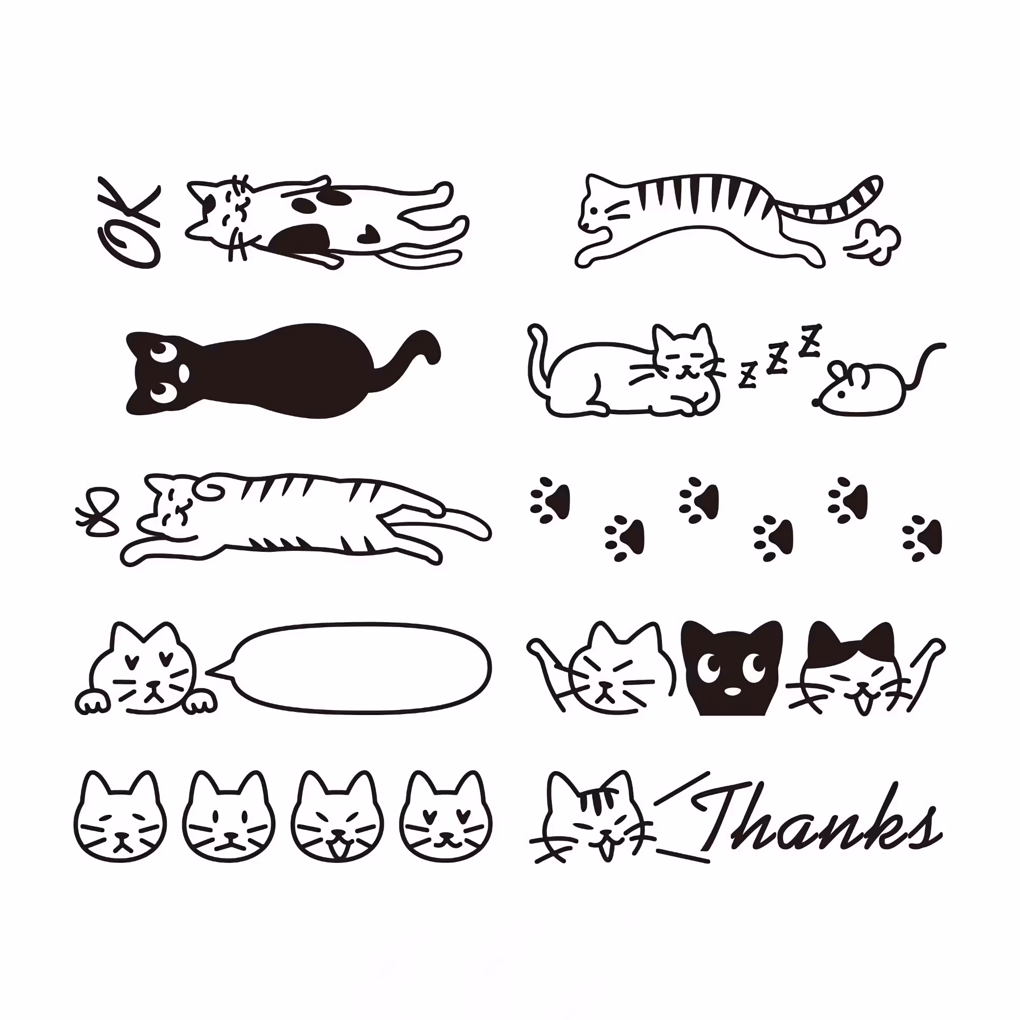Med den här geniala stämpeln från Midori kan du lätt stämpla dit underbara och lekfulla katter. Det oljebaserade bläcket kladdar inte, och möjliggör att du kan fylla i mönstret med en vattenbaserad märkpenna, som exempelvis Midori Colorpens For Paintable Stamps.