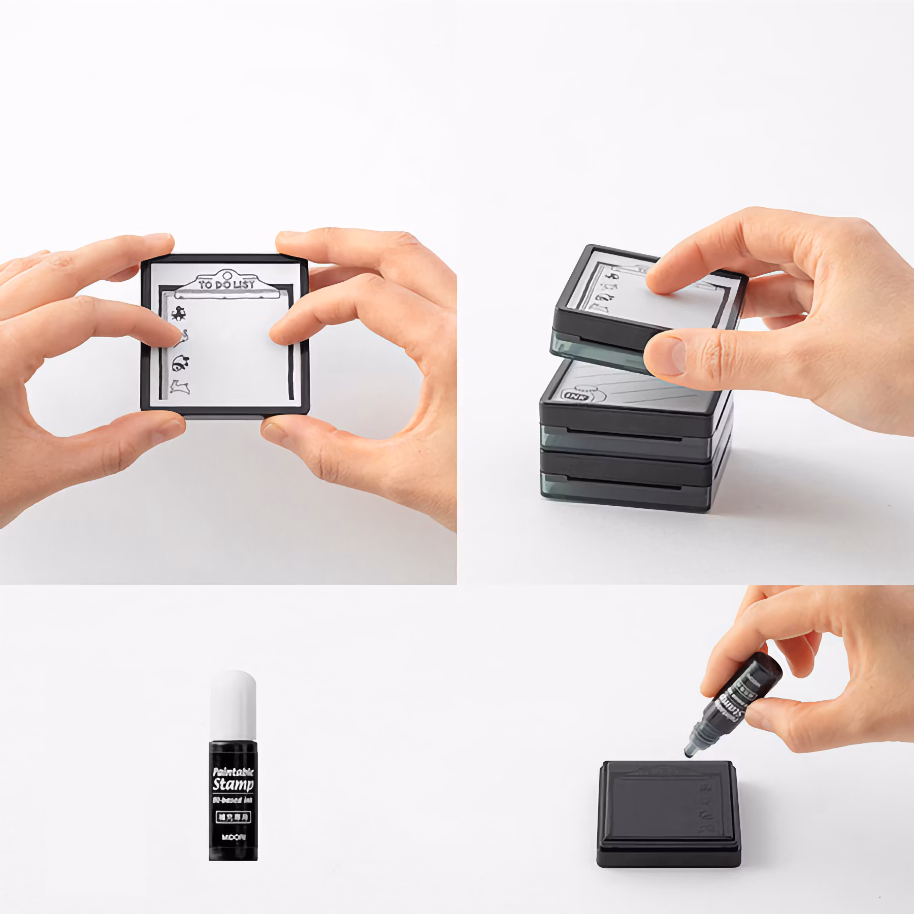 Midoris stämplar är perfekta att användas i din kalender, bullet journal eller anteckningsbok. Det oljebaserade bläcket kladdar inte, och möjliggör att du kan fylla i mönstret med en penna. Bläcket – som redan är påfyllt – räcker ungefär 1000 gånger. Efter detta går det givetvis bra att fylla på mer bläck. Kan staplas för lättare förvaring.