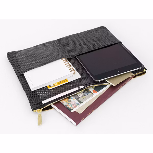 Midoris Paper Cord-serie är tillverkad av högkvalitativ vävd pappersmassa, vanligtvis använd i luxuösa stolar. Materialet är mycket slitstarkt. Väskan har 8 fickor, och rymmer exempelvis en anteckningsbok i B5-format eller en surfplatta.