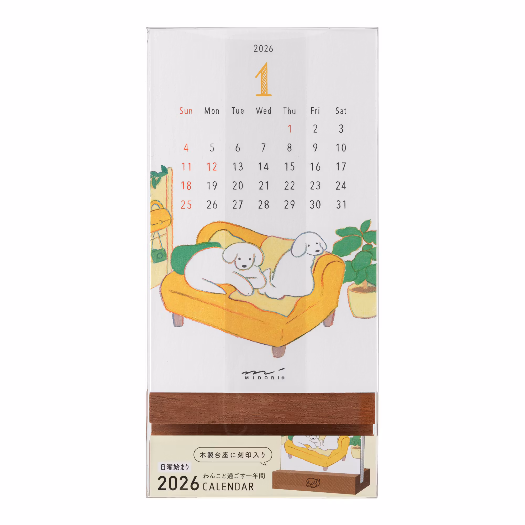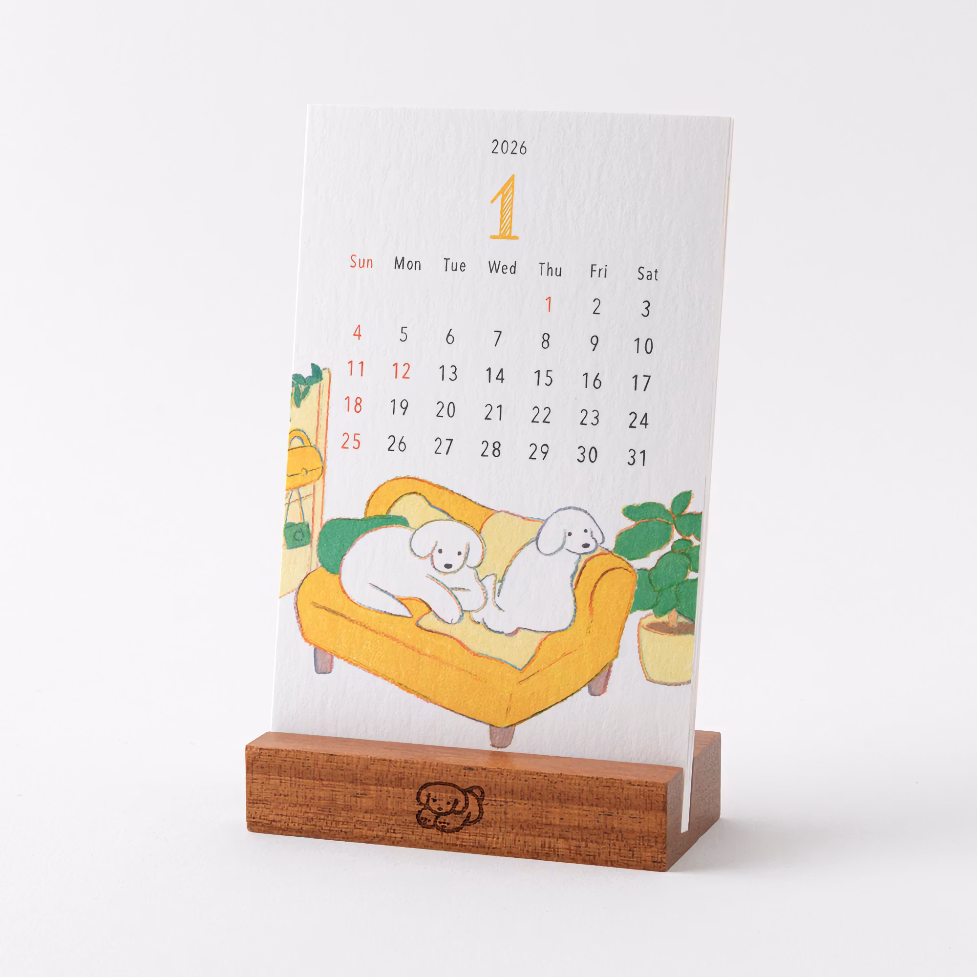 Midoris stående hundkalender är i all sin enkla elegans perfekt att ha på skrivbordet! Kalendern består av 12 blad med härliga hundillustationer. Ett ställ i trä ingår också. Kalendern sträcker sig från januari till december 2026.