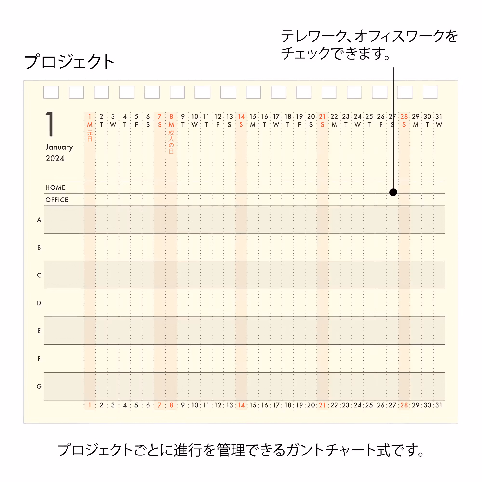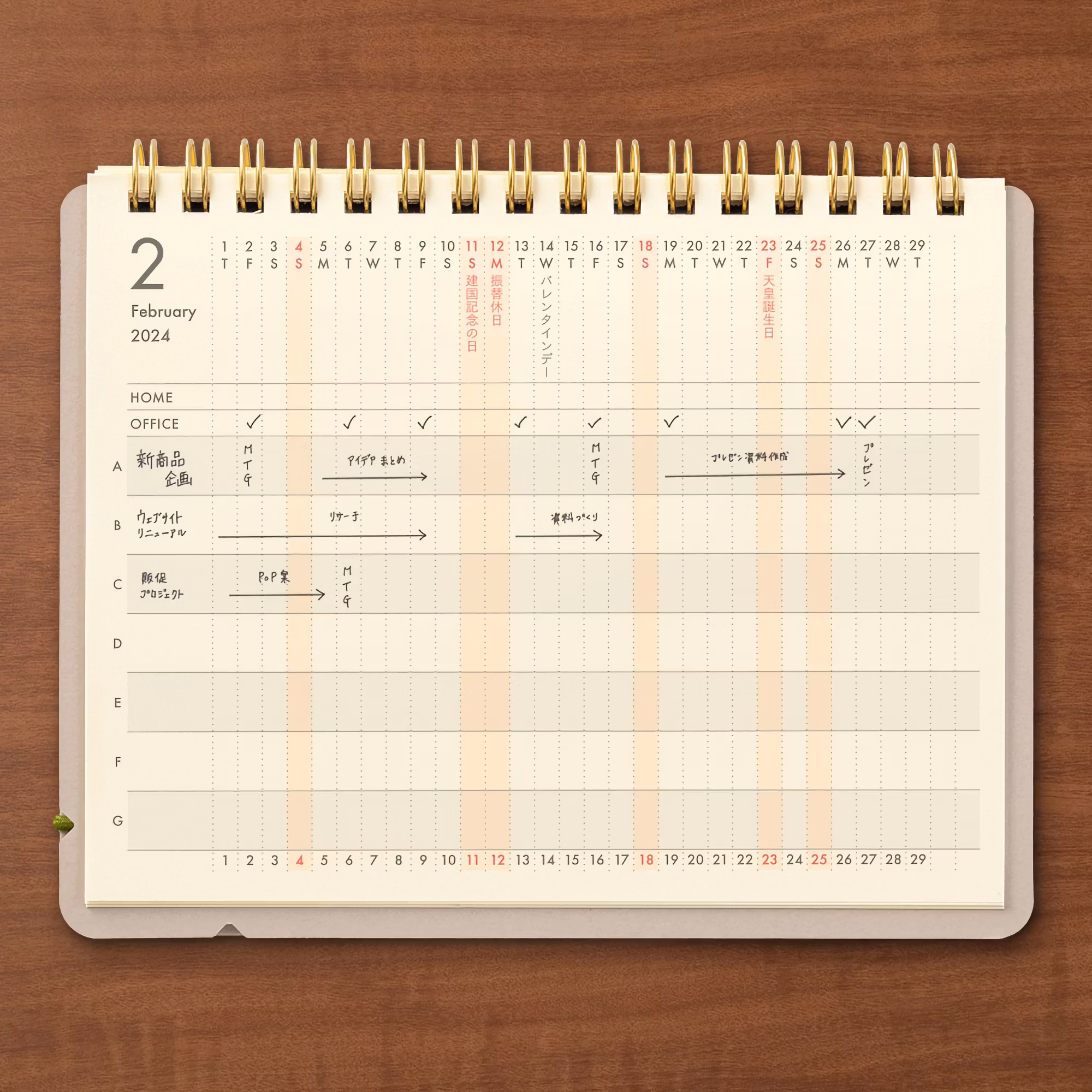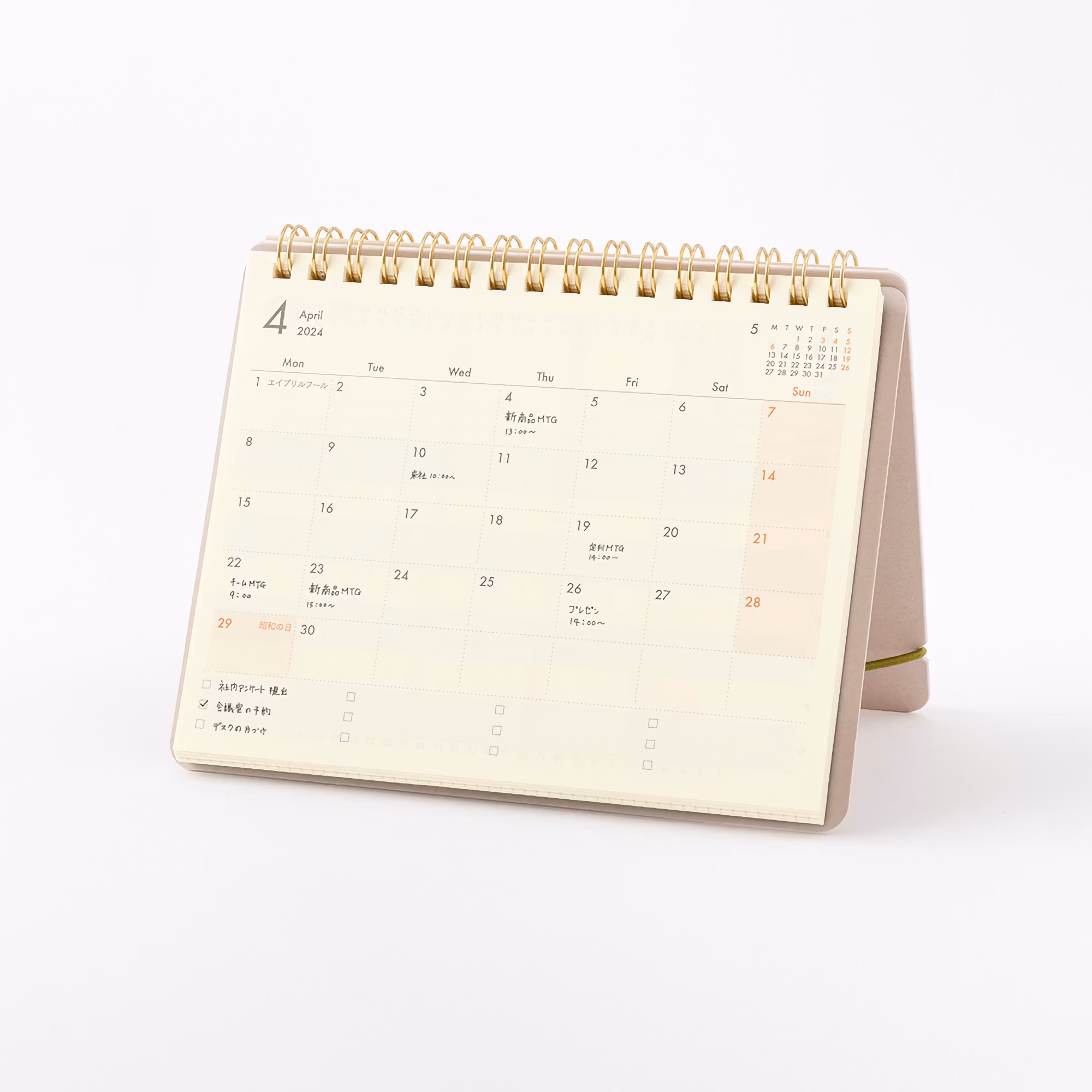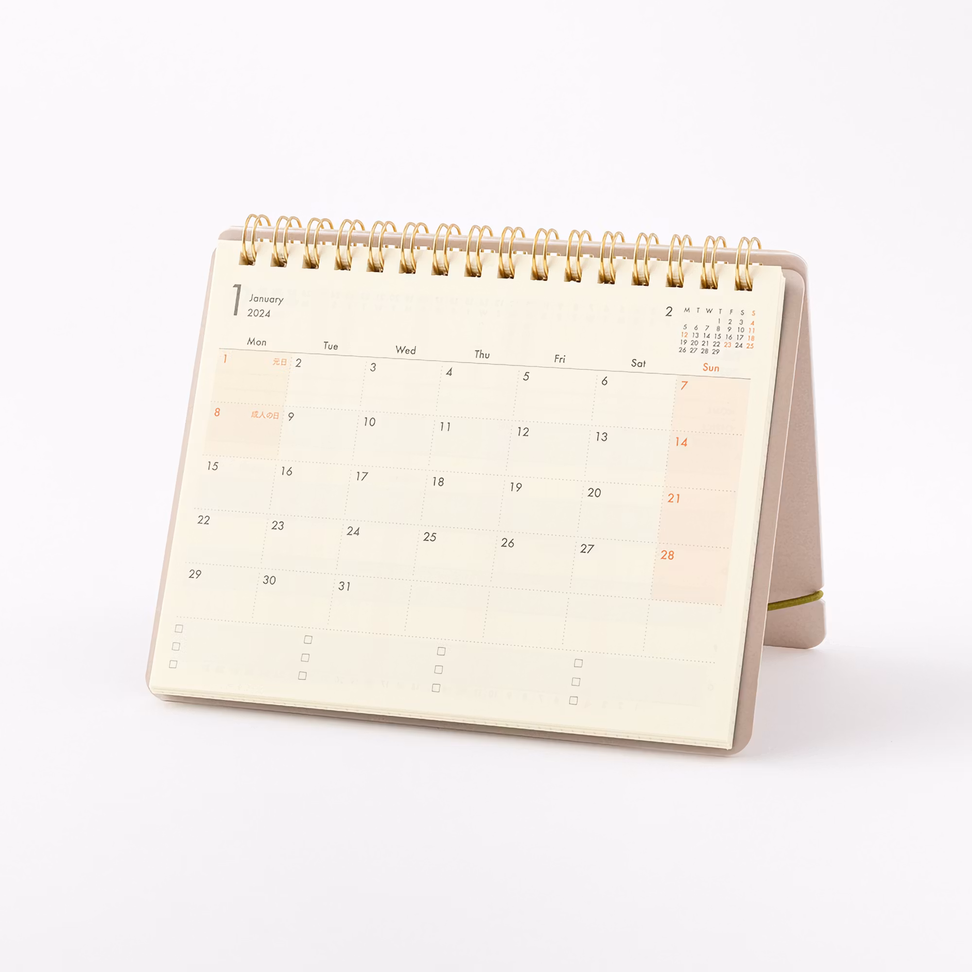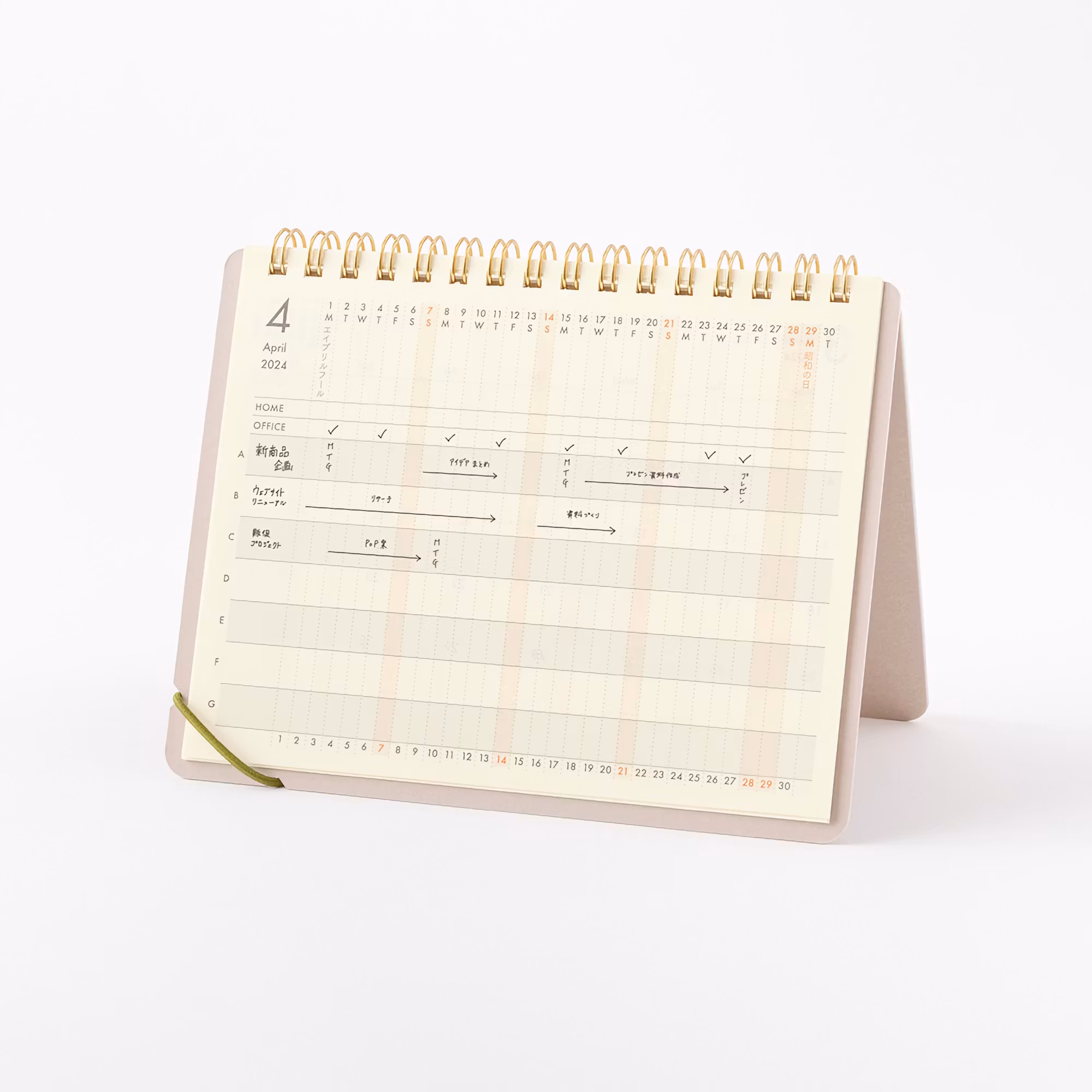 Den här smarta kalendern kan – liksom + Stand Notebook – stå på ditt skrivbord. Dra bara gummisnodden runt hörnen på den bakre pärmen, så kan pärmarna användas som stöd.