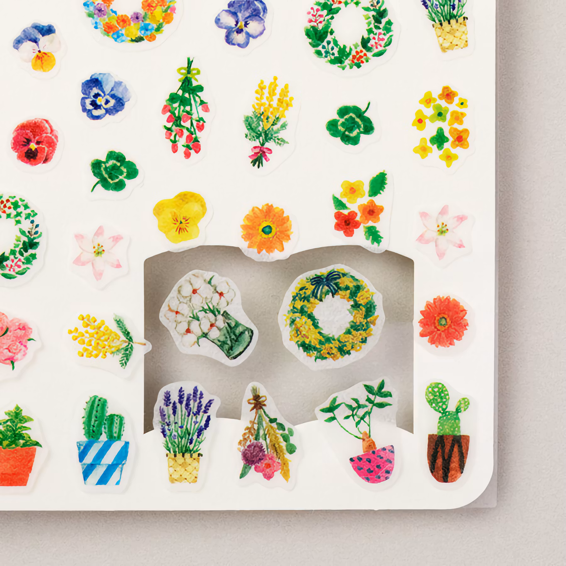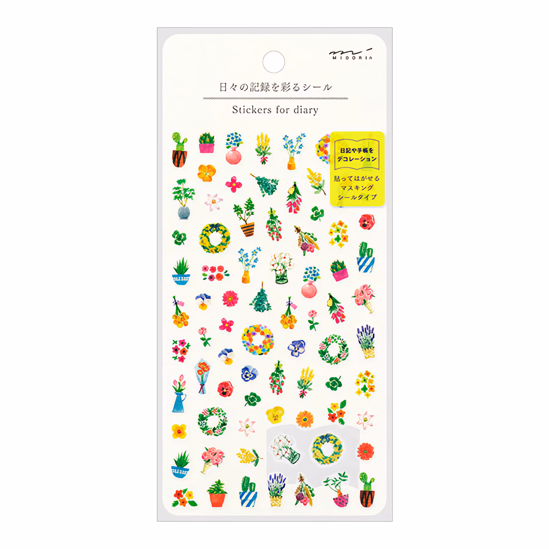 Ett ark med härliga washiklistermärken med blomstertema som lätt kan klistras på och dras av för att sätta färg på din dagbok. Klistermärkena är tänkta att placeras i någon av dagböckerna i Midori Diary with Stickers-serien, men kan så klart användas överallt.