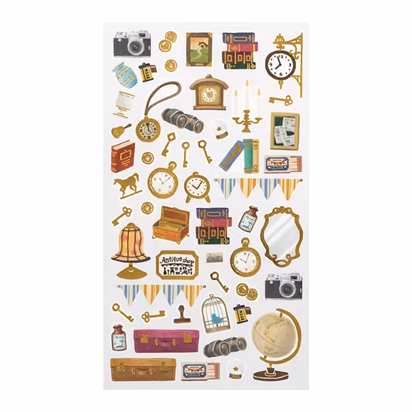 Alla älskar väl antikaffärer?! Det gör så klart Midori också, varför de skapat dessa underbara washiklistermärken med diverser antikviteter. Eftersom de är tillverkade av washi-tejp, går de lätt att avlägsna och ersätta. Perfekta att använda för exempelvis bullet journaling eller som dekoration på paket eller annat.