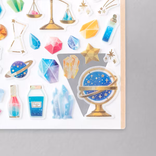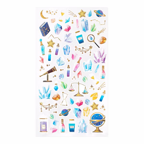 Mineraler och elixir, stjärnor och alkemi! Omfamna det okända med dessa washiklistermärken från Midori. Eftersom de är tillverkade av washi-tejp, går de lätt att avlägsna och ersätta. Perfekta att använda för exempelvis bullet journaling eller som dekoration på paket eller annat.