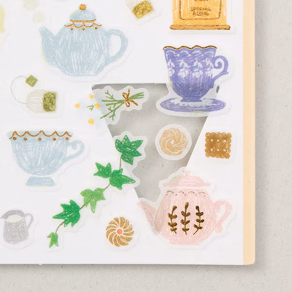 Bjud in till tebjudning med de här underbara teklistermärkena från Midori! Klistermärkena är tillverkade av washi-tejp, vilket gör dem lätta att avlägsna och ersätta. Perfekta att använda för exempelvis bullet journaling eller som dekoration på paket eller annat.