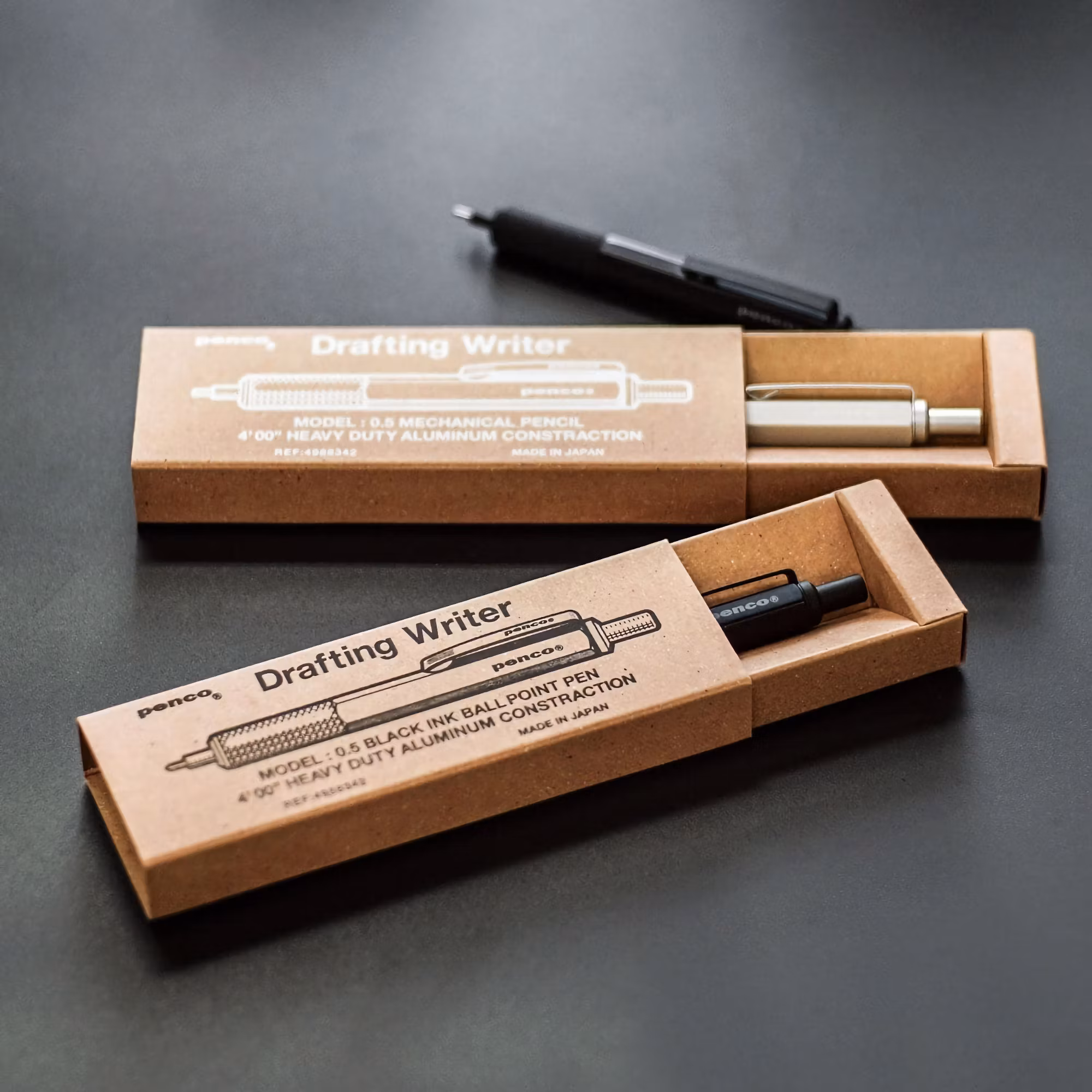 Pencos Drafting Pencil är en liten men elegant stiftpenna, som med sin sofistikerade design passar utmärkt i bröstfickan. Pennan tar stift i 0,5 mm. Pennan är ungefär 105 mm lång.