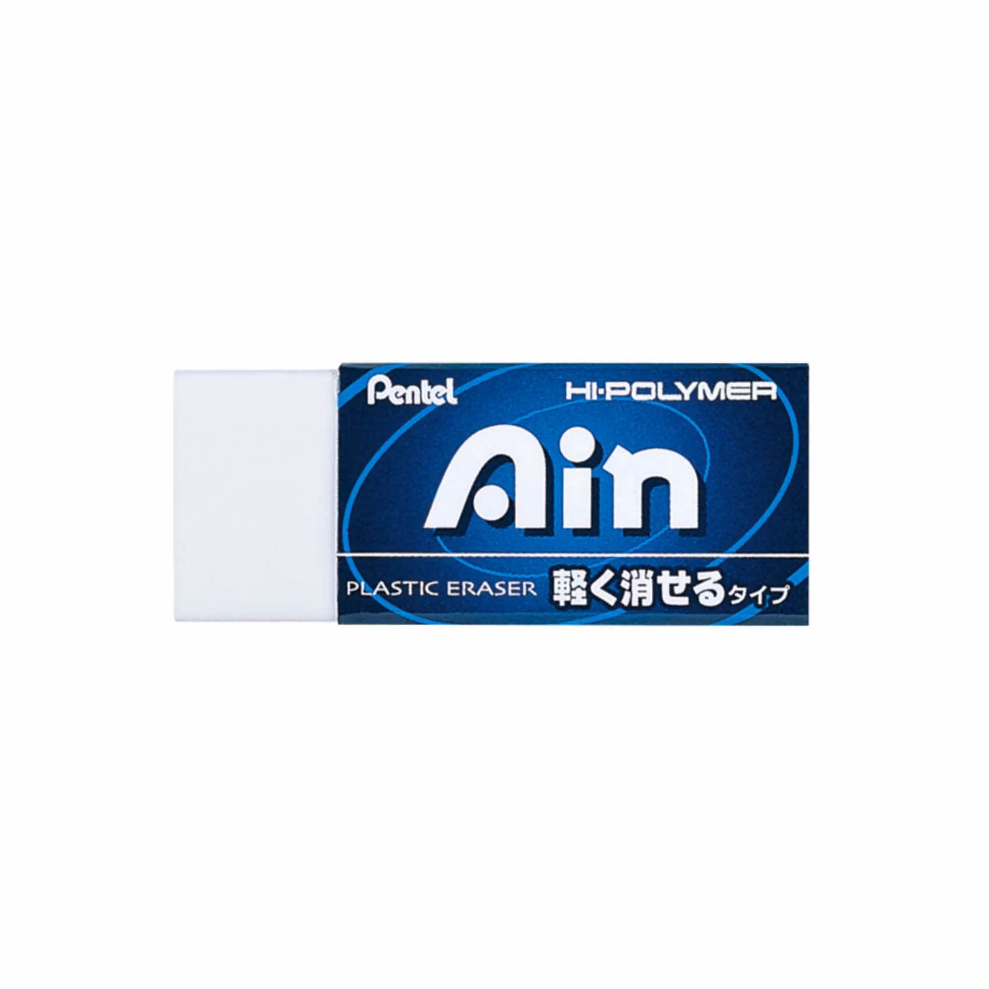 Pentels populära Hi-Polymer Ain-suddgummi är särskilt utformat för att orsaka så lite nötning på pappret som möjligt. Suddgummit producerar dessutom mindre "sudd-damm".
