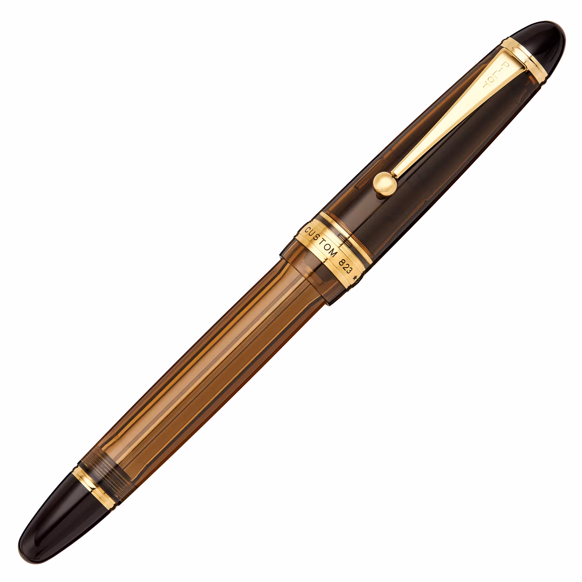 Pilot Custom 823 är en nykomling i Custom-serien, och har nu kommit att bli ett av Pilots flaggskepp. Spetsen är i 14k guld och den bruna kroppen tillsammans med gulddetaljerna ger pennan en sofistikerad utstrålning. Den något genomskinliga kroppen gör dessutom att pennan får en modern känsla, samtidigt som du kan se hur mycket bläck som finns kvar.
