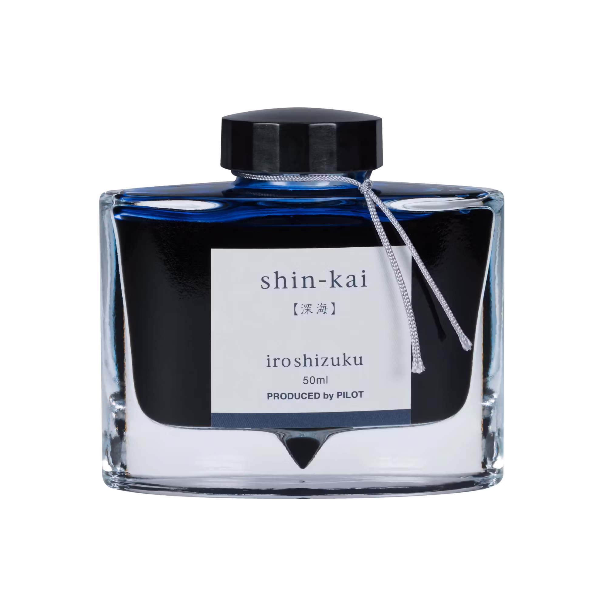 Shin-kai, som på japanska betyder djuphav, är ett mellanmörkt blått bläck med inslag av svart. Flaskan har en nedsänkning i mitten vilket gör att du kan suga upp det till sista droppen. Finns också i 15 ml-flaska.