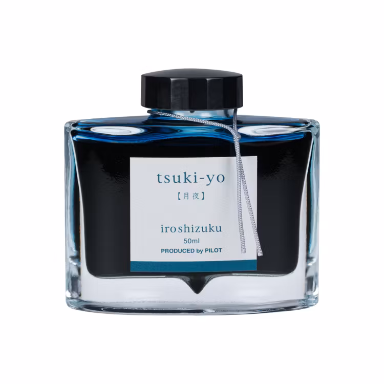 Tsuki-yo, som på japanska är ett slags idiom för månbelyst natt (mån-lik), är ett intensivt blå-svart bläck. Flaskan har en nedsänkning i mitten vilket gör att du kan suga upp det till sista droppen. Finns också i 15 ml-flaska.