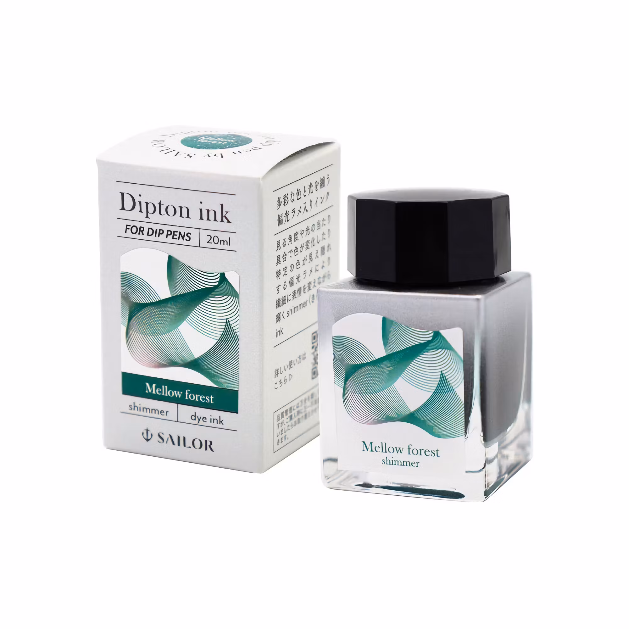Sailor Dipton Mellow forest är en del av Sailors bläckkollektion Dipton för dopp-pennor. Dipton har fått sitt namn efter engelskans dip (doppa), samt det japanska ton (ett onomatopoetiskt ord som kommer av ljudet när en pennspets träffar kanten på en bläckflaska). Mellow forest är ett shimmer-bläck som rör sig mellan olika nyanser av grönt, med inslag av silver.
