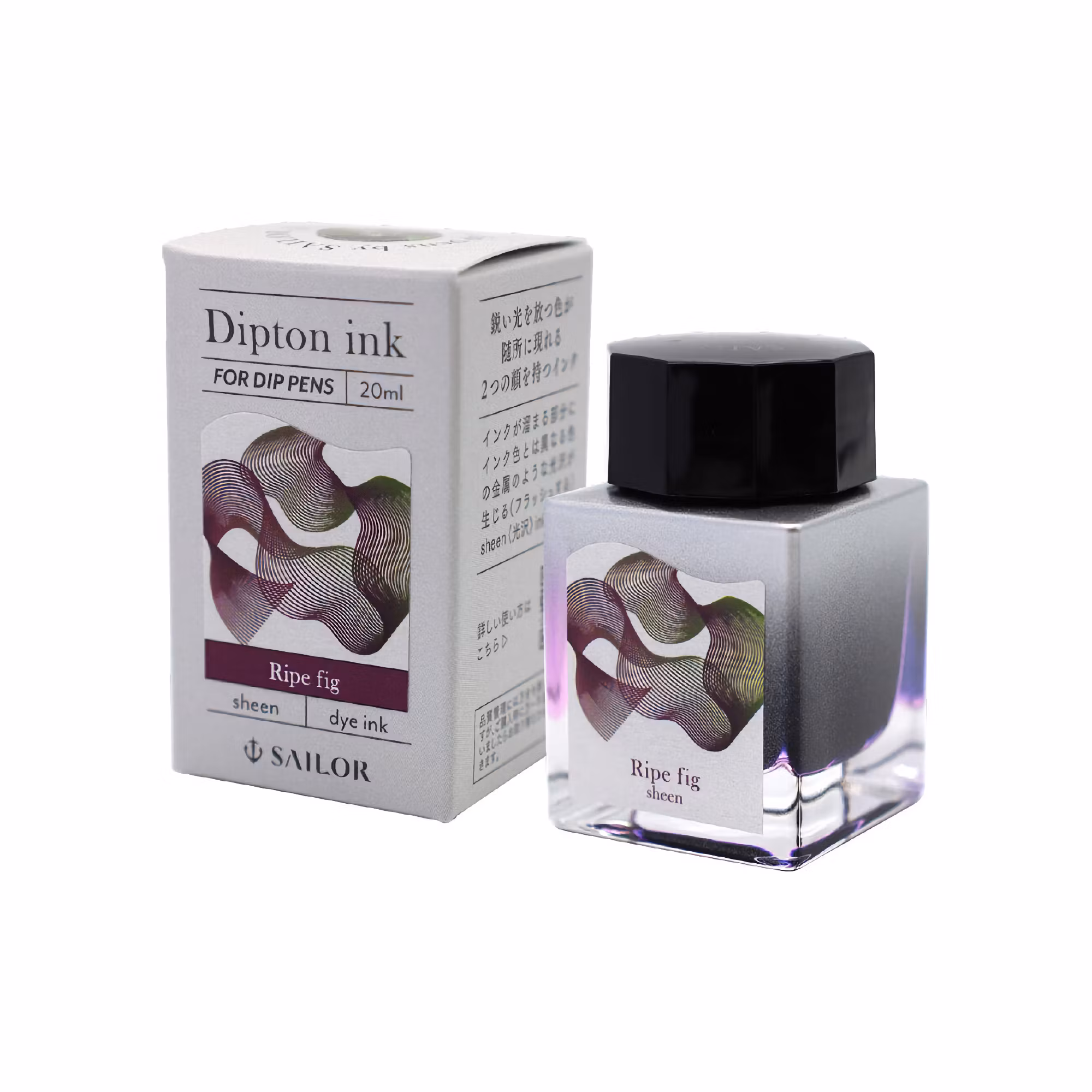 Sailor Dipton Ripe fig är en del av Sailors bläckkollektion Dipton för dopp-pennor. Dipton har fått sitt namn efter engelskans dip (doppa), samt det japanska ton (ett onomatopoetiskt ord som kommer av ljudet när en pennspets träffar kanten på en bläckflaska). Ripe fig är ett sheen-bläck som rör sig mellan grönt, lila och mörkblått med mycket glans.