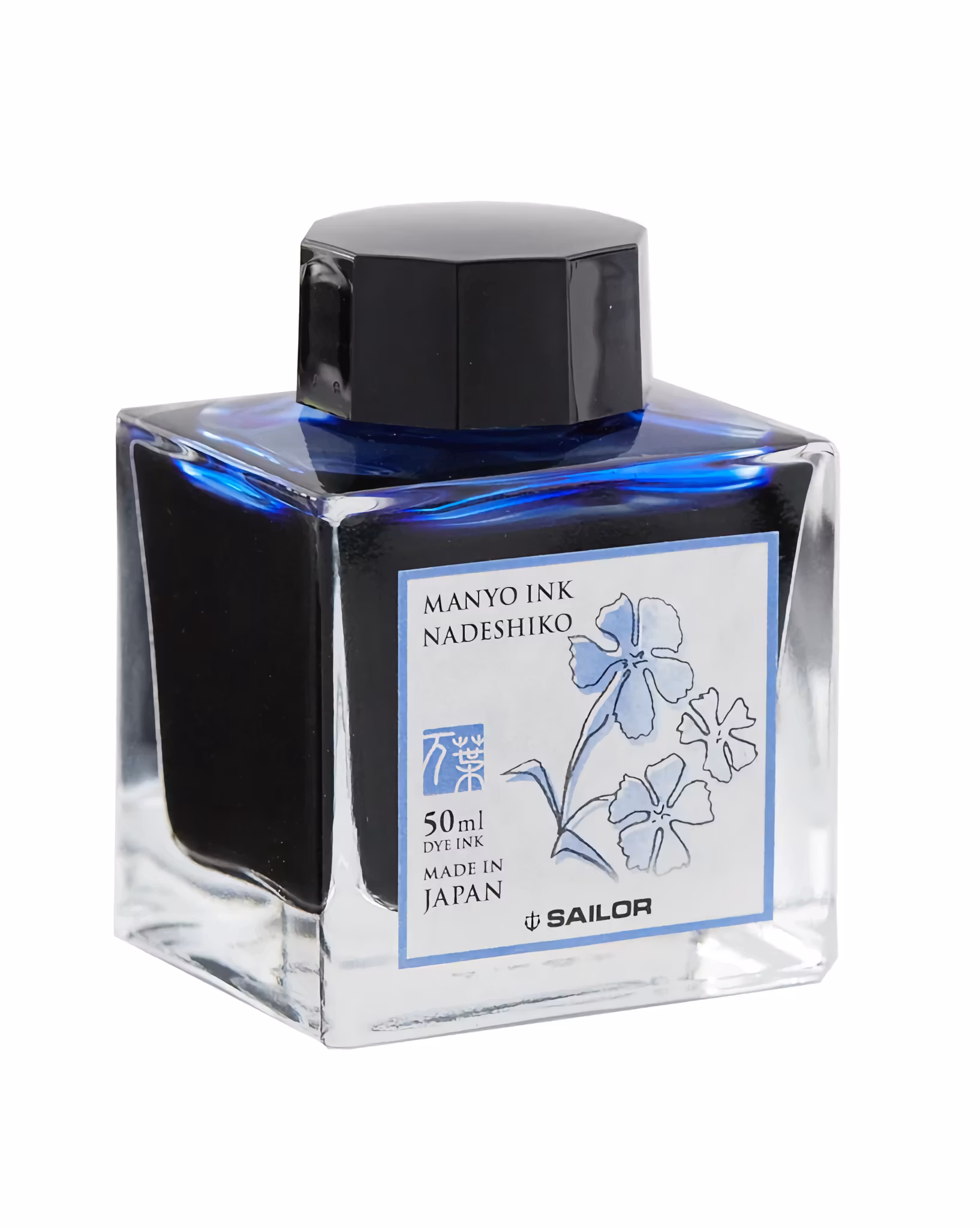 Nadeshiko är ett blått bläck i Sailors Manyo-serie. Detta jämnt flödande och vattenbaserade bläck kommer i en 50 ml-flaska och passar till alla typer av reservoarpennor. Finns också i flera andra färger.