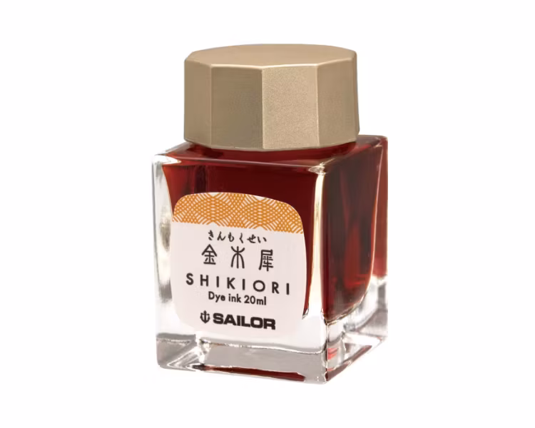 Sailors Shikiori (japanska för ”fyra säsonger”) är en serie bläck med livliga och unika färger inspirerade av skönheten hos de japanska årstiderna. Säker att använda i alla typer av reservoarpennor. Kin-Mokusei är inspirerat av syrenväxten Osmanthus fragrans, som i Japan kallas just kinmokusei (guldosmanthus) om blommorna är orangefärgade.