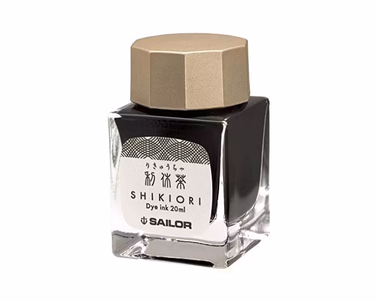 Sailors Shikiori (japanska för ”fyra säsonger”) är en serie bläck med livliga och unika färger inspirerade av skönheten hos de japanska årstiderna. Säker att använda i alla typer av reservoarpennor. Rikyucha har en djup och olivgrön nyans. Vattenbaserad. Finns också i flera andra färger.