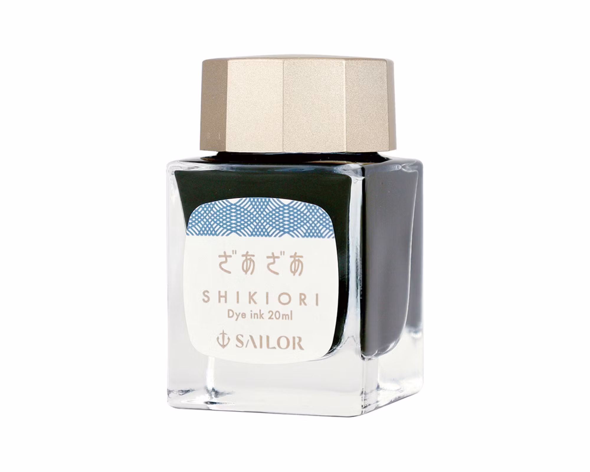 Sailors Shikiori (japanska för ”fyra säsonger”) är en serie bläck med livliga och unika färger inspirerade av skönheten hos de japanska årstiderna. Säker att använda i alla typer av reservoarpennor. Zaza, som betyder ösregn, har en mörkblå nyans. Vattenbaserad. Finns också i flera andra färger.