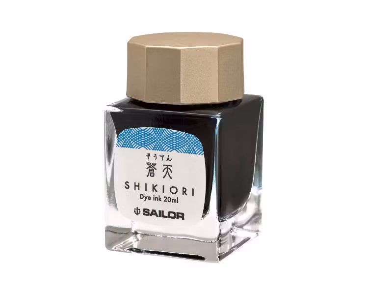 Sailors Shikiori (japanska för ”fyra säsonger”) är en serie bläck med livliga och unika färger inspirerade av skönheten hos de japanska årstiderna. Säker att använda i alla typer av reservoarpennor. Souten, som på japanska betyder azurblå himmel, är mild och skönt blå.