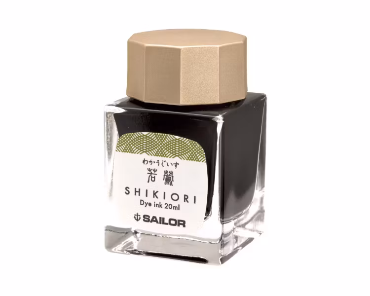 Sailors Shikiori (japanska för ”fyra säsonger”) är en serie bläck med livliga och unika färger inspirerade av skönheten hos de japanska årstiderna. Säker att använda i alla typer av reservoarpennor. Waka-Uguisu är inspirerat av japansk cettia, som med sin gröna fjäderdräkt liknar detta bläck.