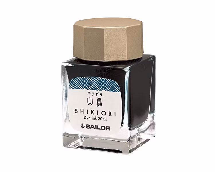 Sailors Shikiori (japanska för ”fyra säsonger”) är en serie bläck med livliga och unika färger inspirerade av skönheten hos de japanska årstiderna. Säker att använda i alla typer av reservoarpennor. Yamadori har en dämpad och nyanserad turkos nyans. Vattenbaserad. Finns också i flera andra färger.