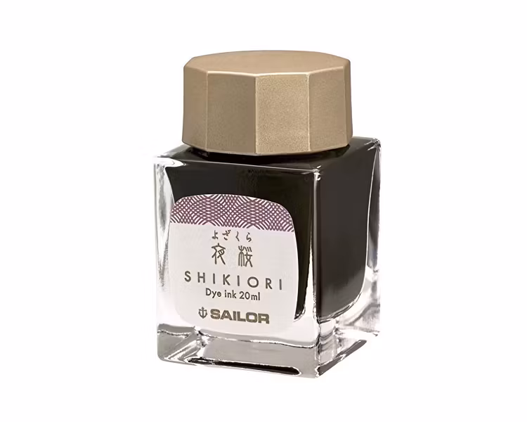 Sailors Shikiori (japanska för ”fyra säsonger”) är en serie bläck med livliga och unika färger inspirerade av skönheten hos de japanska årstiderna. Säker att använda i alla typer av reservoarpennor. Yozakura har en dämpad nyans av lila och rosa pastell. Vattenbaserad. Finns också i flera andra färger.