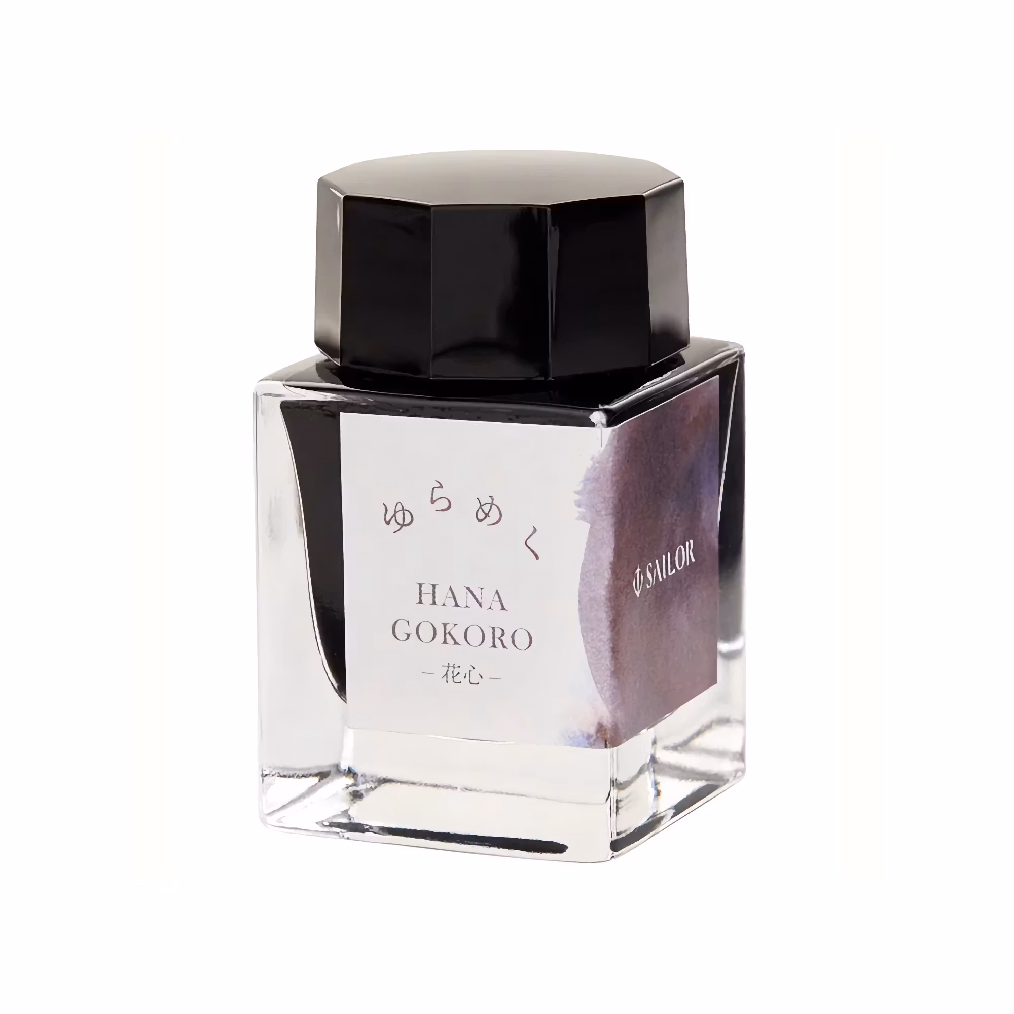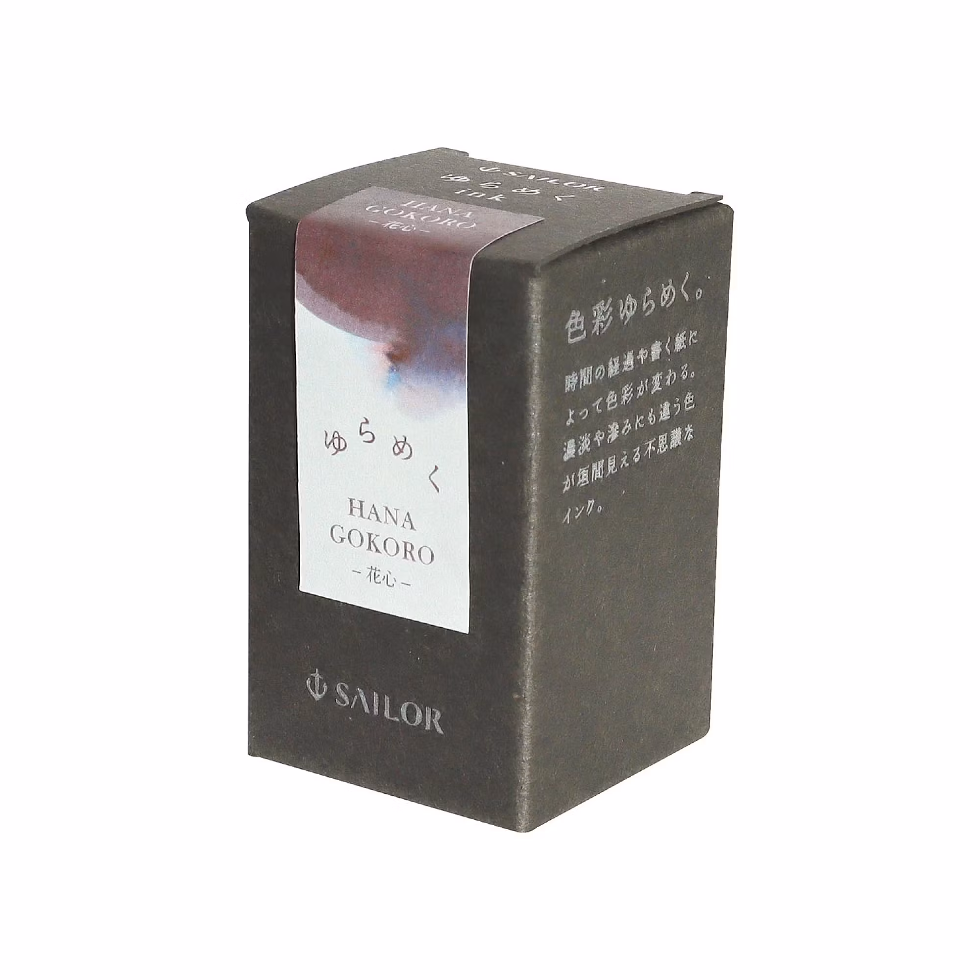 Sailor Yurameku Hana Gokoro är en del av Sailors bläckkollektion Yurameku för reservoarpennor. Hela serien kännetecknas av mjuka, dämpade färger med skuggningsegenskaper inspirerade av himlen. Färgskiftningarna i Yurameku-serien varierar beroende på tid och typ av papper. Hana Gokoro är ett bläck som rör sig mellan brunt, rost, rosa och lila. Vattenbaserad. Finns också i flera andra färger.