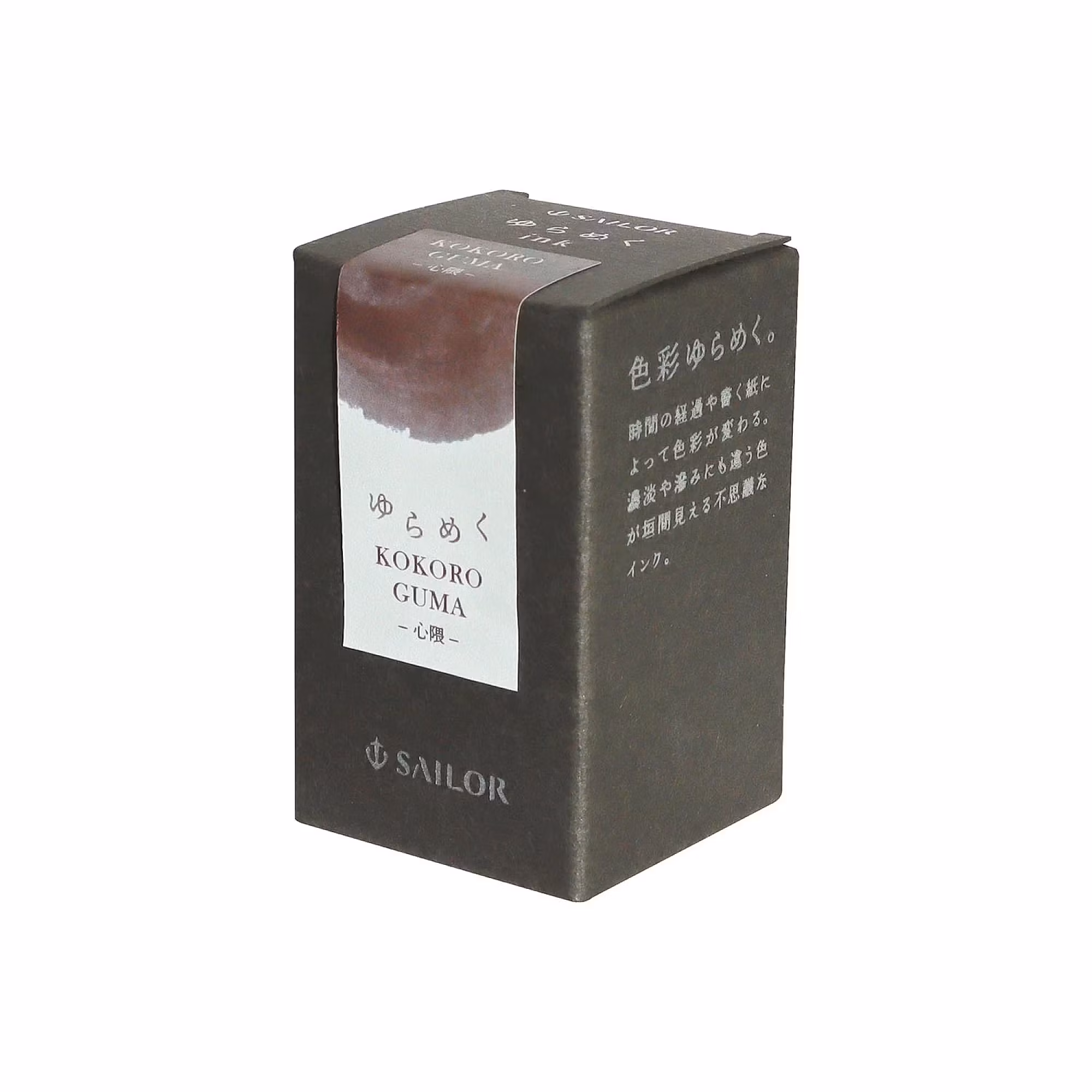 Sailor Yurameku Kokoro Guma är en del av Sailors bläckkollektion Yurameku för reservoarpennor. Hela serien kännetecknas av mjuka, dämpade färger med skuggningsegenskaper inspirerade av himlen. Färgskiftningarna i Yurameku-serien varierar beroende på tid och typ av papper. Kokoro Guma är ett bläck som rör sig mellan brunt, rost och rött. Vattenbaserad. Finns också i flera andra färger.