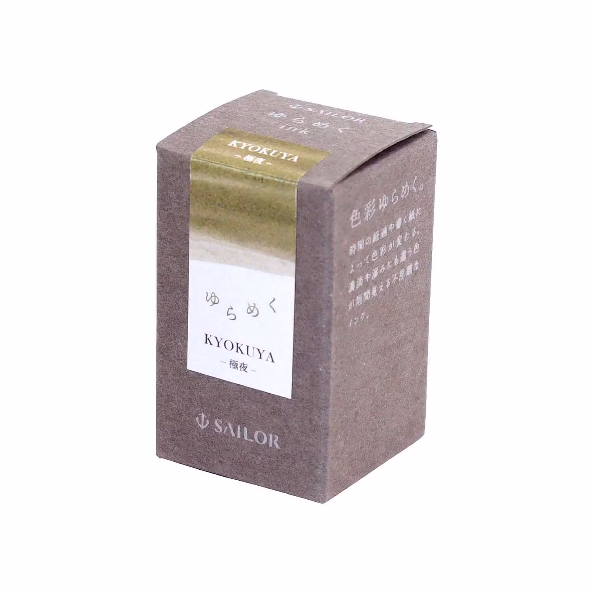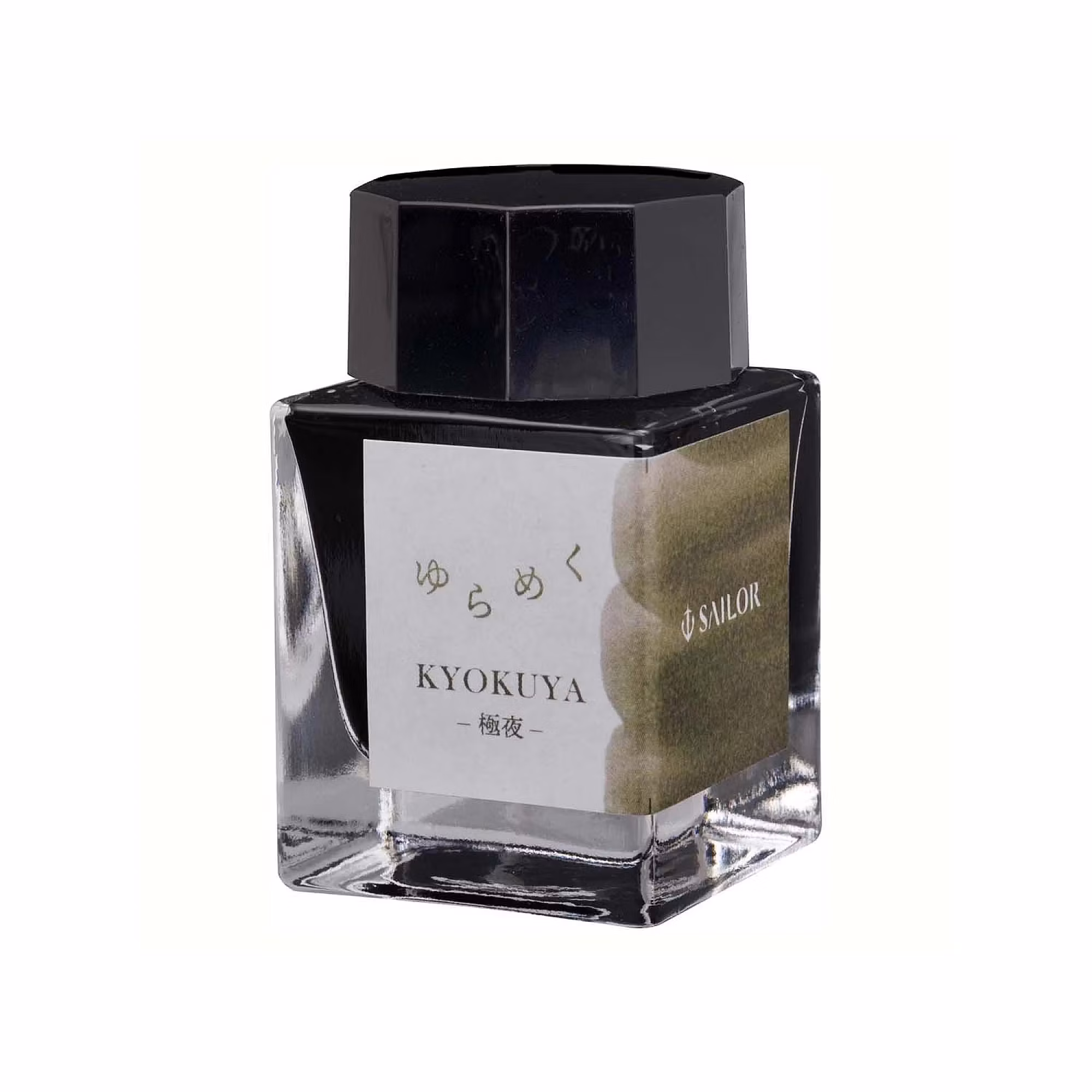 Sailor Yurameku Kyokuya är en del av Sailors bläckkollektion Yurameku för reservoarpennor. Hela serien kännetecknas av mjuka, dämpade färger med skuggningsegenskaper inspirerade av himlen. Färgskiftningarna i Yurameku-serien varierar beroende på tid och typ av papper. Kyokuya är ett bläck som rör sig mellan ljusgrönt, mörkgrönt och blått. Vattenbaserad. Finns också i flera andra färger.