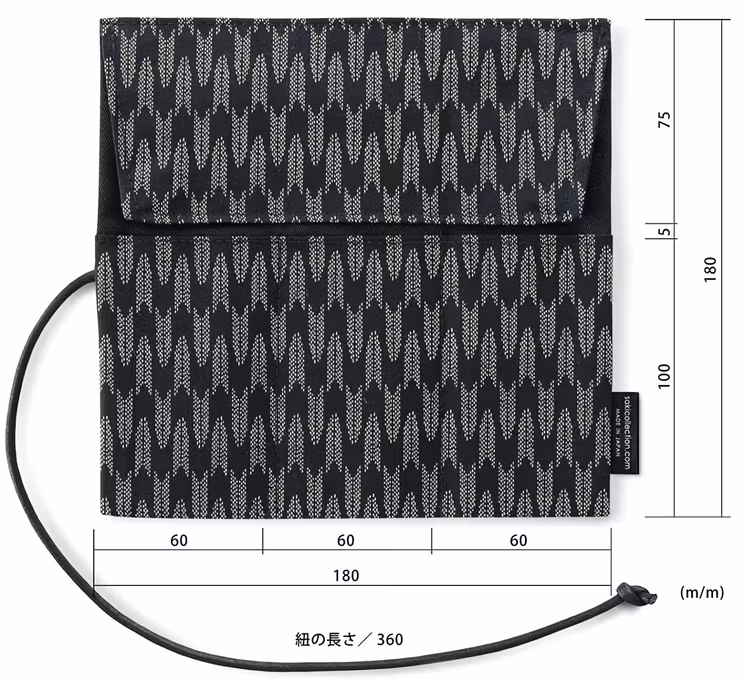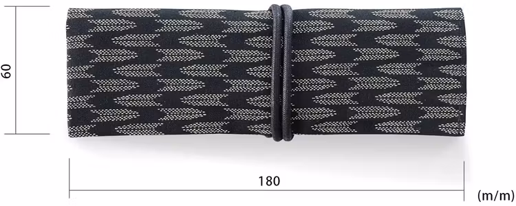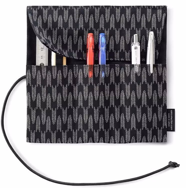 Bär dina pennor med stil med detta pennfodral från japanska Saki. Rullfodralen är tillverkade i Japan av högkvalitativt bomull med traditionellt japanskt mönster. Fodralet har tre fickor som är ungefär 10 cm djupa. Totalt rymmer det ungefär 8-10 pennor beroende på storlek.