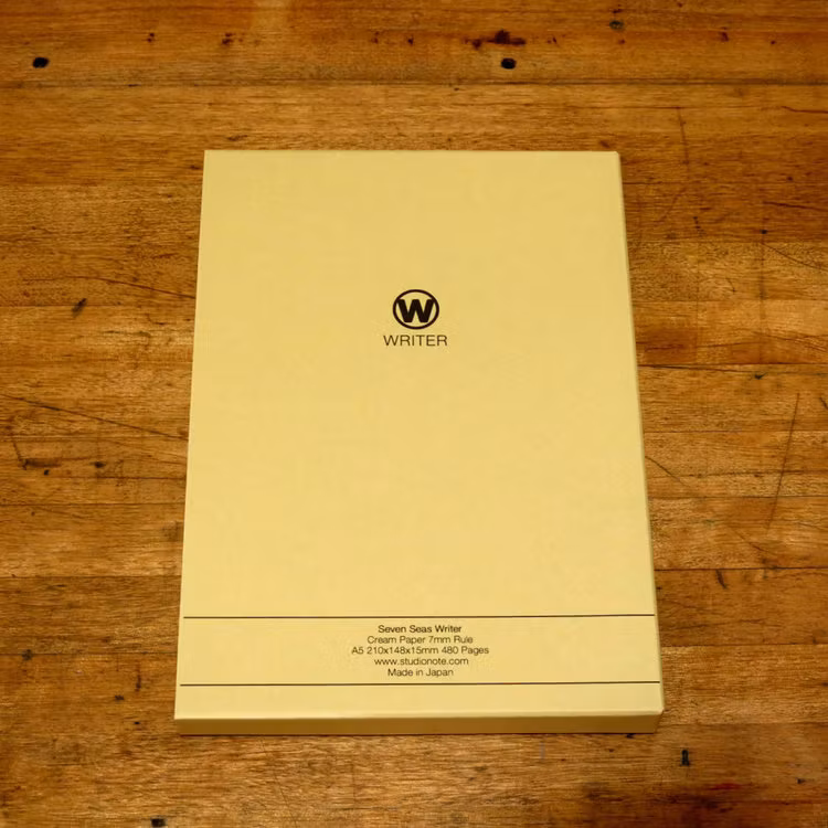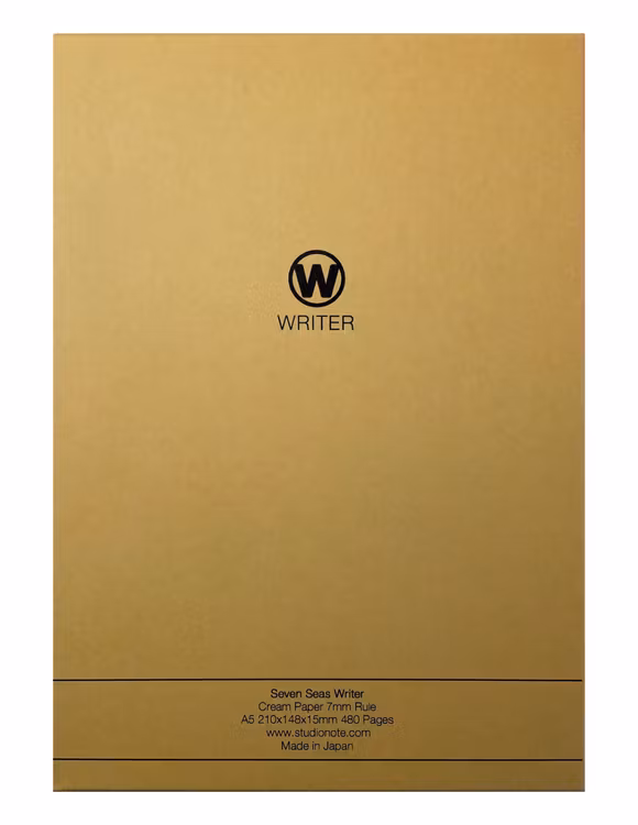 Tomoe River! Seven Seas Writer i A5-format är på samma gång kaxig och diskret. Diskret i sin avskalade design – kaxig i sin tyngd, sitt papperval, och i sin funktion. Anteckningsboken består av det japanska pappret Tomoe River, som på grund av sin kultstatus knappast behöver någon närmare presentation. Men för den som ändå är nyfiken: det är tunt, klarar av vilken penna som helst, och ger ditt bläck en alldeles särskild glans. Sidorna är bundna med trådbindning och är lätt linjerade. Öppnas helt plant.