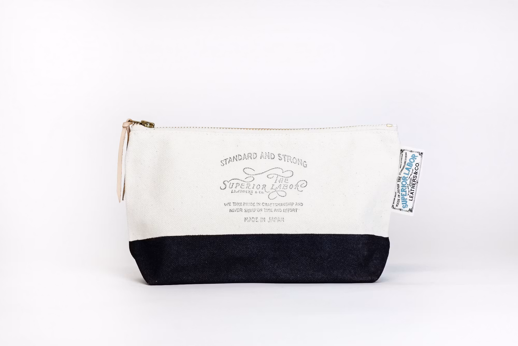 The Superior Labors Engineer Pouch är handgjorda, handmålade och handstämplade i deras studio i bergen i Okayama, Japan. Storlek #03 passar utmärkt till att förvara exempelvis Traveler's Notebook i regular-storlek tillsammans med diverse tillbehör. Väskan är tillverkad av en robust bomullscanvas som mjuknar och blir smidigare ju mer den används.