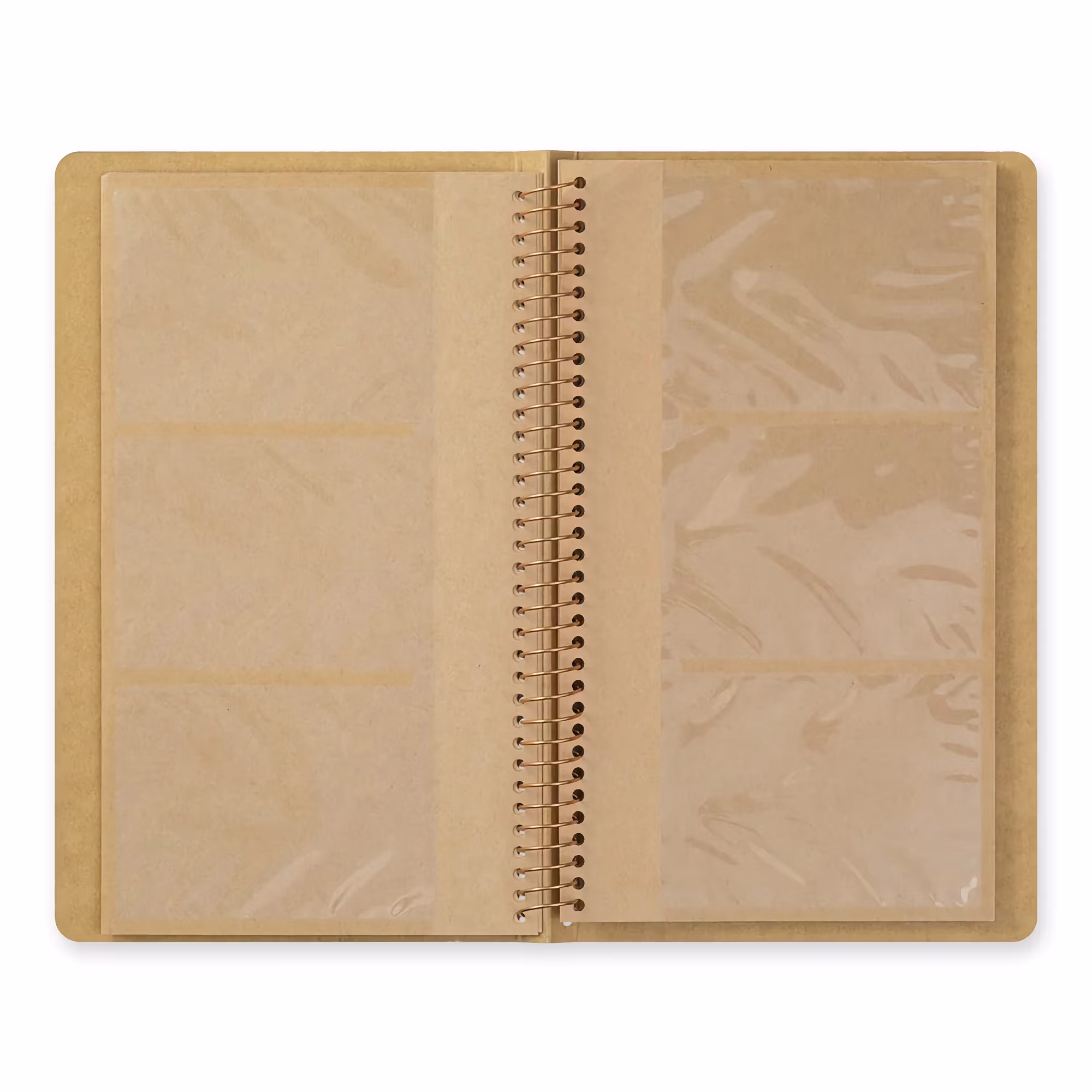 Varje sida i den här ringbundna anteckningsboken från Traveler's Company har tre praktiskt fickor! Fickorna är ungefär 64 x 87 mm, och rymmer därför ganska precis exempelvis visitkort. Sidorna är tillverkade av kraftpapper, vilket gör de extra robusta. Omslaget är tillverkat av naturfärgat papp med inslag av harts, vilket gör det extra tåligt. Omslaget har också en pelikan-symbol som förstås symboliserar fickorna.
