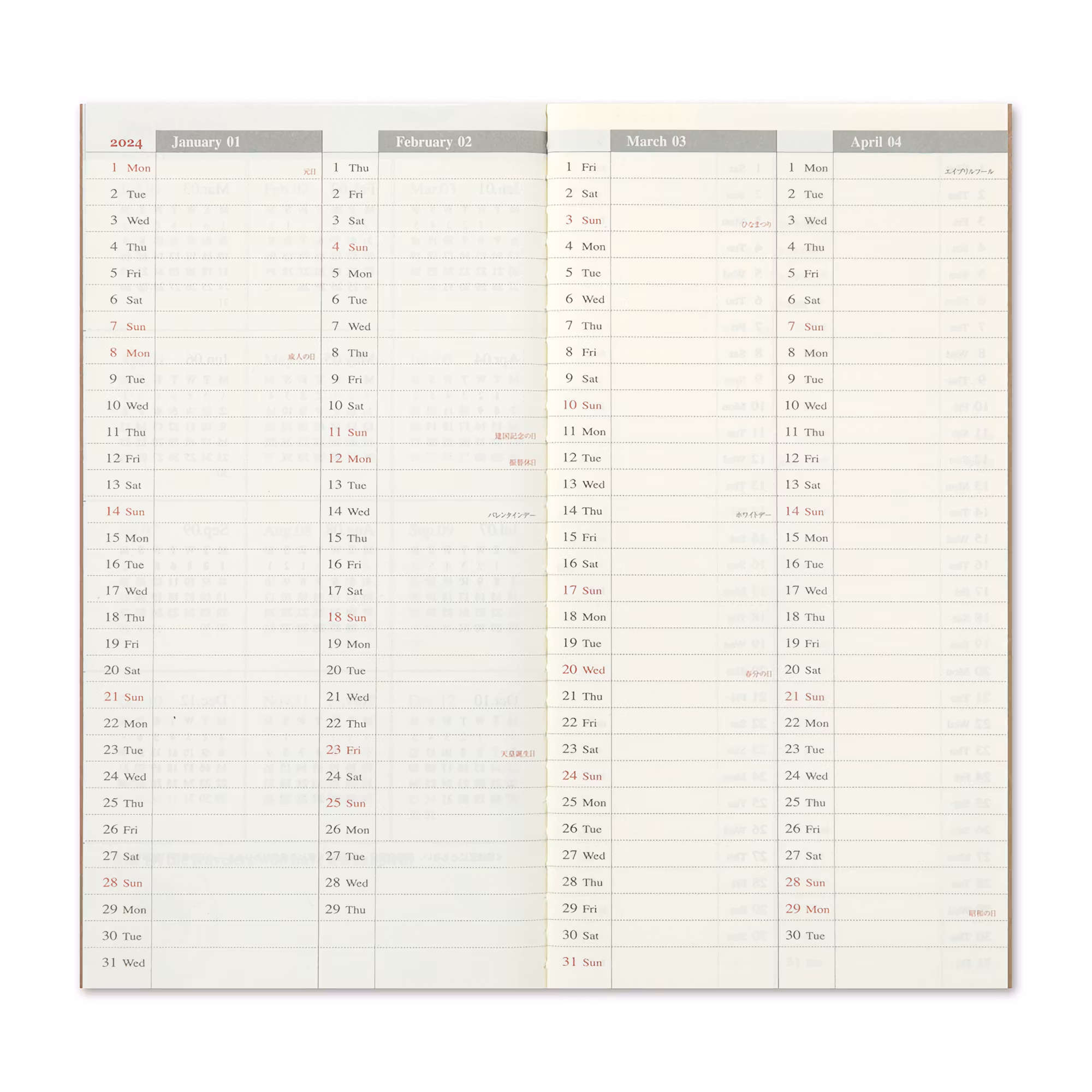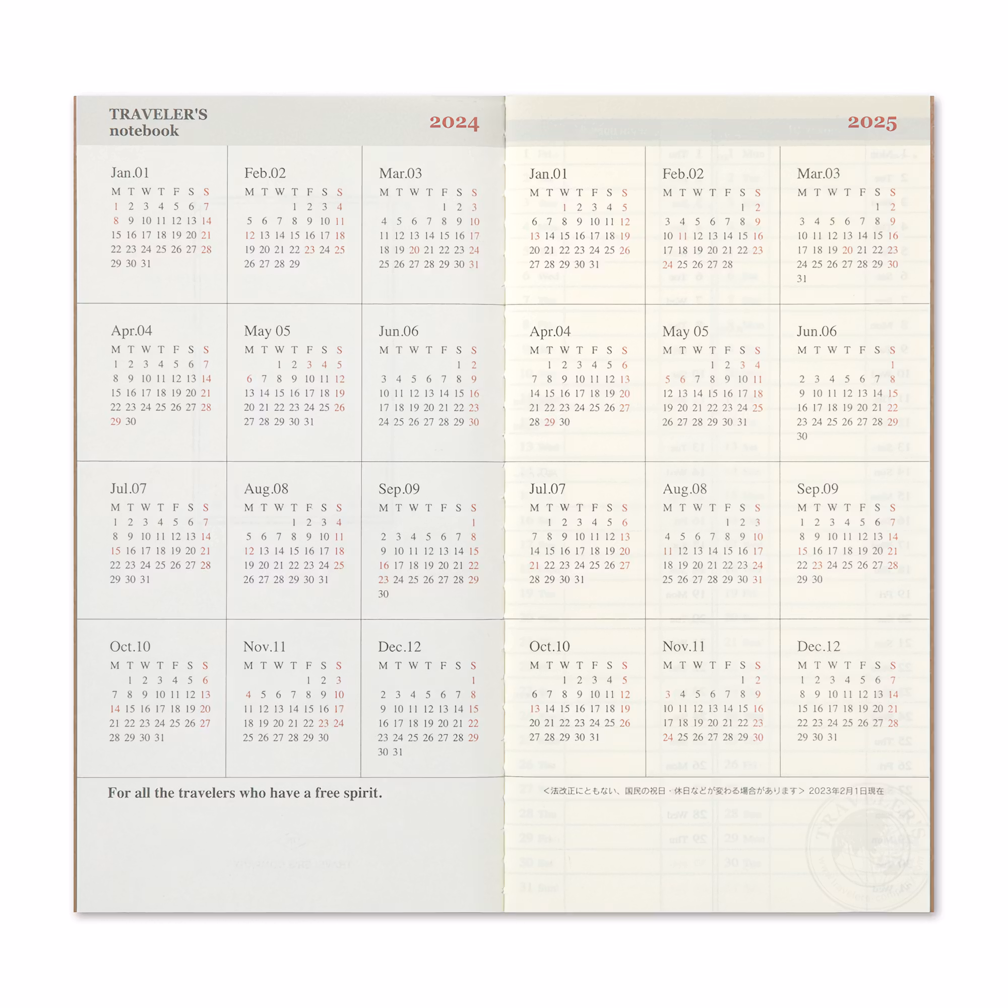 Äntligen är Traveler's Companys kalendrar för 2024 här! Varje uppslag i den här kalendern har en veckovy på vänster sida, och en tom rutad sida till höger. På så sätt kan du enkelt och ganska strikt planera din vecka till vänster, samtidigt som du har fria händer att vara mer kreativ till höger. Den här kalendern är uppdelad i två böcker, som båda innehåller 6 månader var. Kalendern kommer också med en guide samt klistermärken.