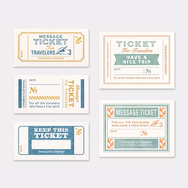 Ett helt gäng fina meddelandekort i passport-storlek till något av Traveler’s notebooks läderfodral i samma storlek.