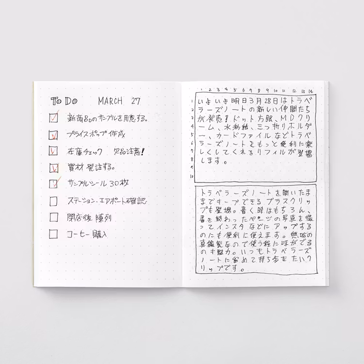 Anteckningsboken innehåller mycket uppskattade Midori MD Paper, som är resistent mot genomblödning och bläckutflytningar, vilket därmed också gör det vänligt mot reservoarpennor.