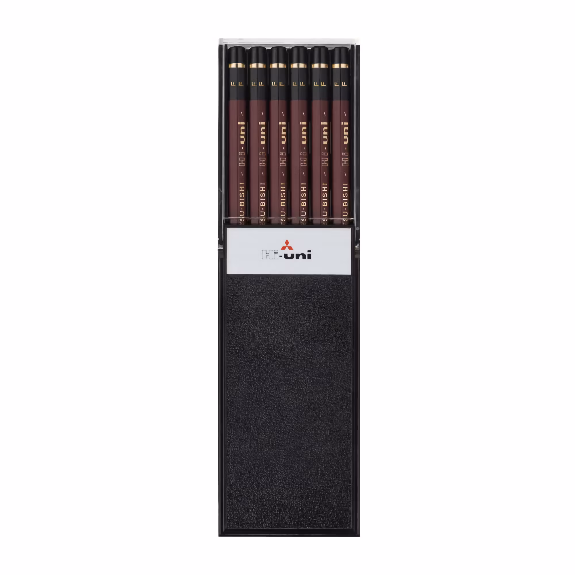 Hi-Uni kan nog betraktas som konstnärernas hemliga vapen – oavsett om det rör sig om skrift, skiss eller teckningar. Pennorna skriver med jämna rika och mörka linjer. Det här 12-packet levereras ovässade i ett plastfodral.