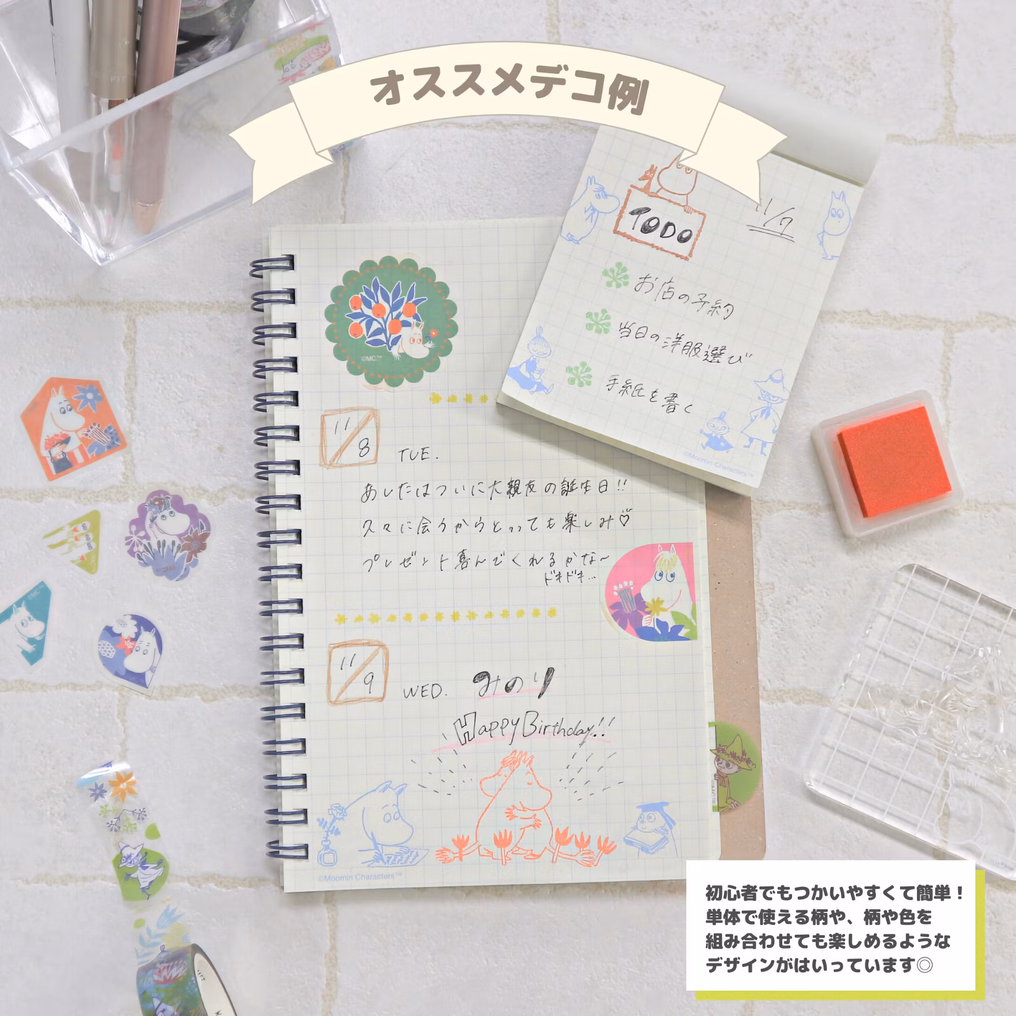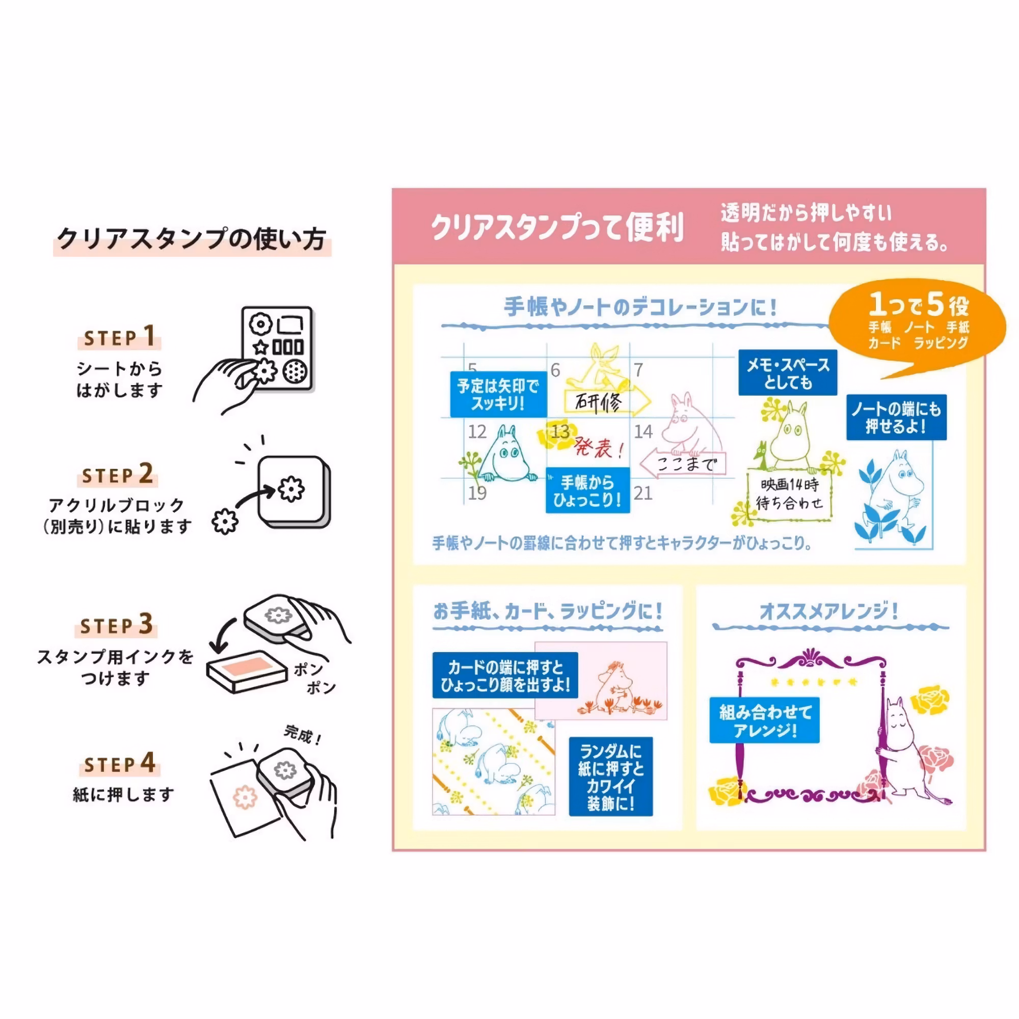 World Craft:s härliga Mumin-stämplar är fantastiska att använda i exempelvis en kalender, på brevpapper/kuvert, eller i din anteckningsbok.