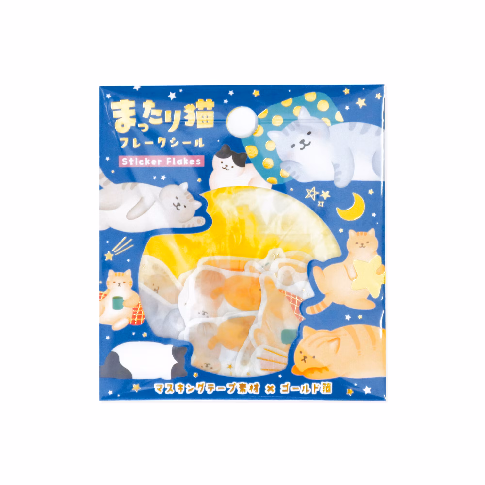 Washitejp med kattmotiv i flake-utförande från japanska World Craft.